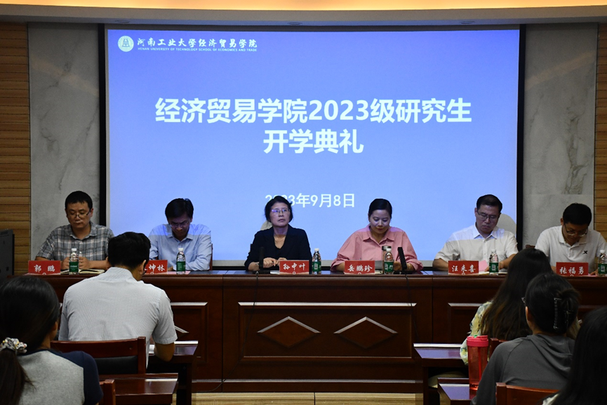 在3605会议室举办2023级研究生新生开学典礼。院长孙中叶,副院长朱坤林、汪来喜,教师代表、学生代表、粮食经济数据中心主任郭鹏、研究生辅导员张福勇及2023级全体研究生新生参加了此次典礼。典礼由院党委副书记、副院长岳鹏珍主持。