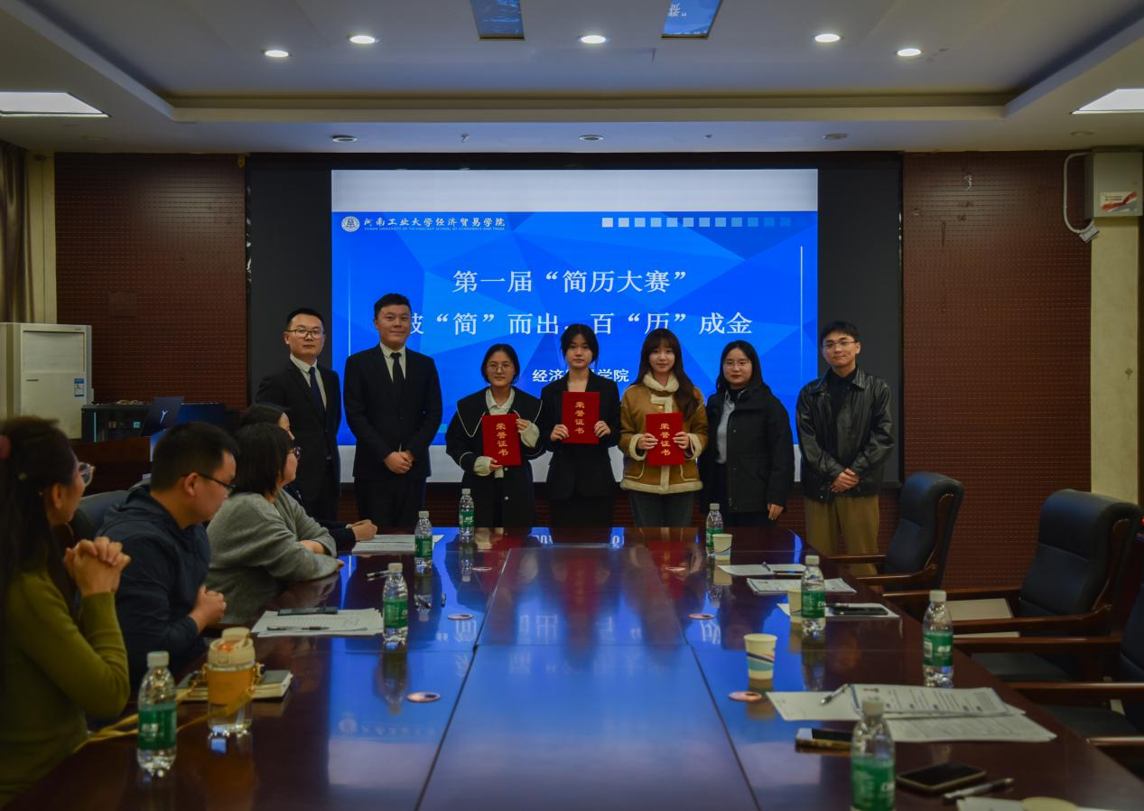 评委们结合选手的现场表现、简历内容与排版设计进行综合评定打分。商晓蕊获得特等奖;李珍获得一等奖;张钰婷、明蝶获得二等奖;梁丽元、李佳静、张云茹、罗延晴、庞晓艺获得三等奖。参赛老师及企业HR为获奖学生颁发证书和奖品,获奖选手与老师合影留念。