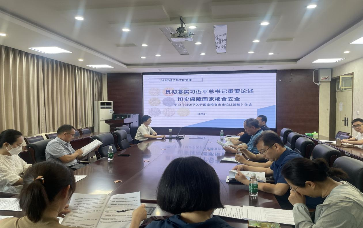 院长孙中叶教授应邀做题为“贯彻落实习近平总书记重要论述 切实保障国家粮食安全”专题党课。经济学系全体党员参加,会议由系党支部书记何宇鹏主持。