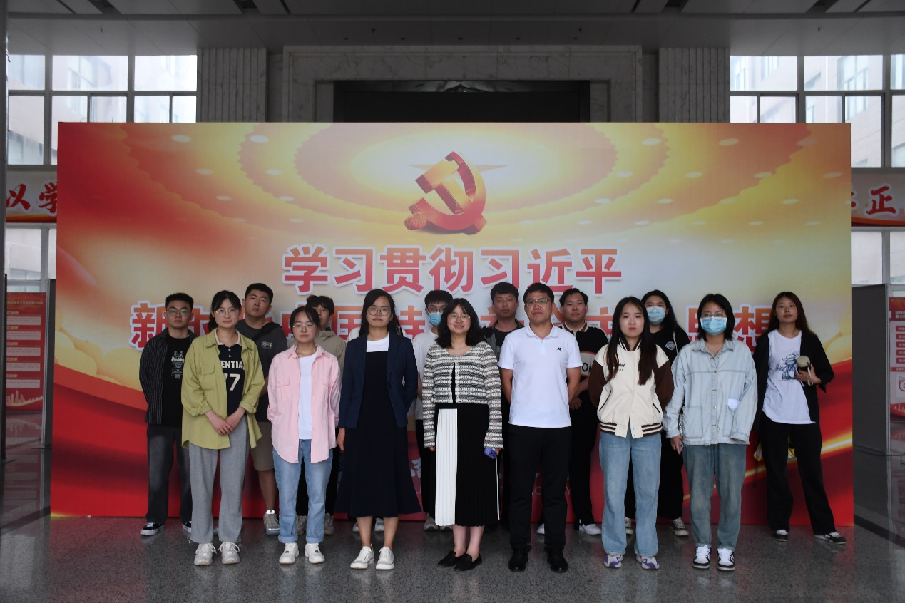 为推进学习贯彻习近平新时代中国特色社会主义思想主题教育纵深开展,5月26日下午,足球比分网站 学生党支部指导教师王秋瑾、时燕明、张福勇带领研究生党支部部分党员到学校办公楼二楼大厅参观“学习贯彻习近平新时代中国特色社会主义思想主题教育专题展”。
