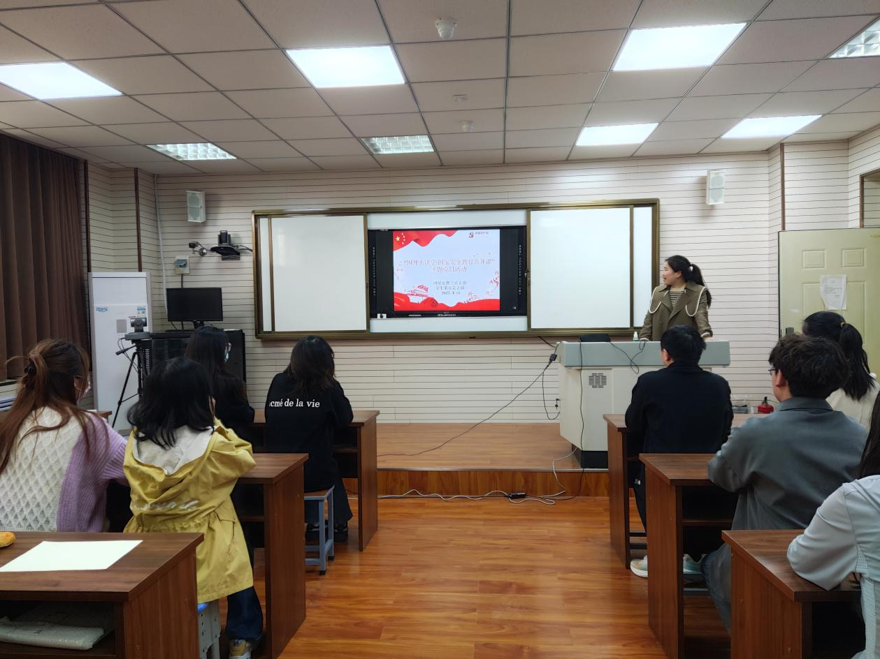 为进一步推动国家安全教育,切实提升全党支部党员国家安全意识,在“4.15”全民国家安全教育日来临之际,4月11日下午,国贸系教工党支部联合学生第五党支部开展了“全民国家安全教育日”主题党日活动。本次活动由国贸系教工党支部书记鲁慧鑫主持,国贸系教工党支部部分党员、学生第五党支部全体党员干部参加了活动。