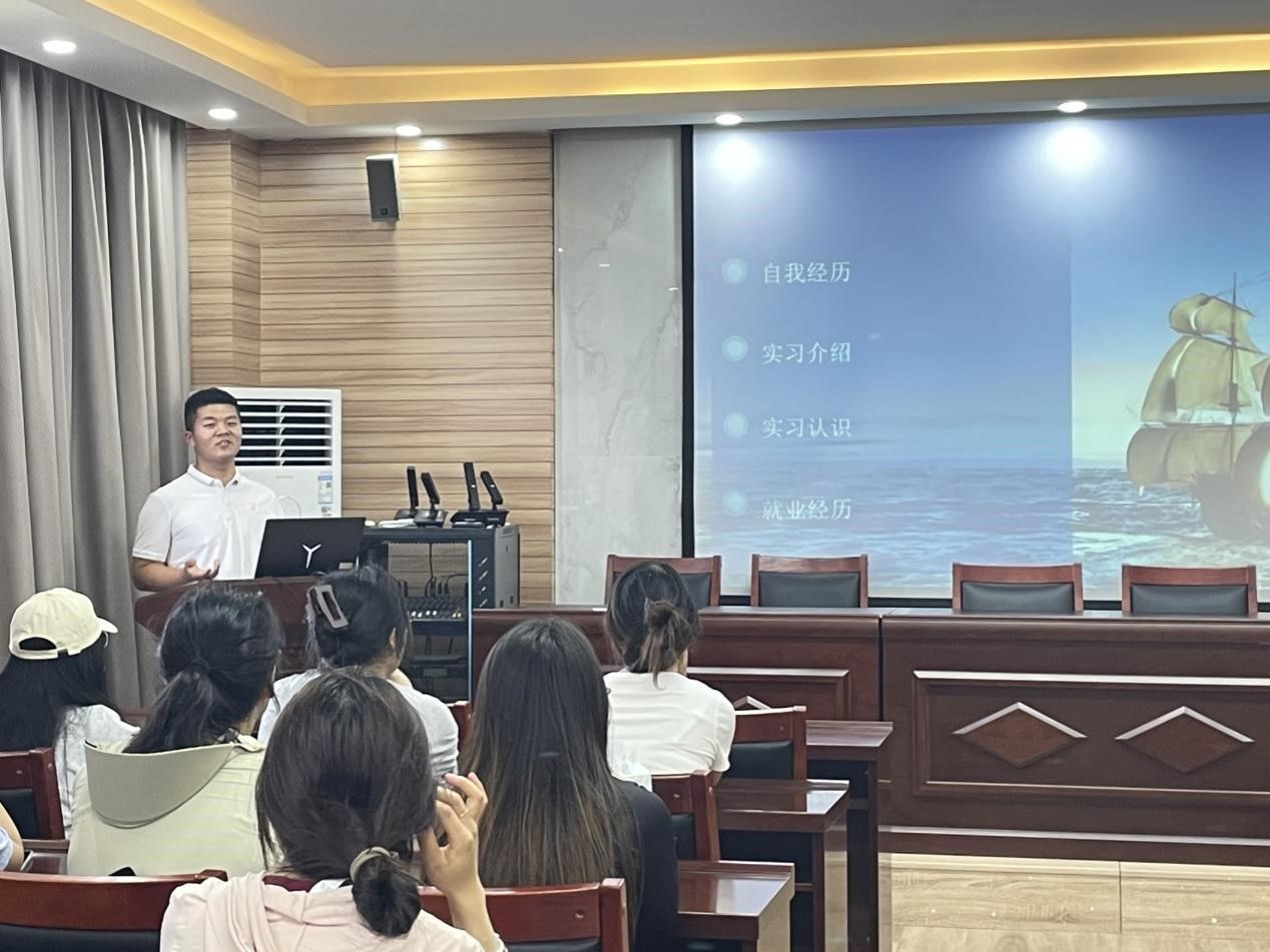 会议伊始,三位同学依次上台分享经验。王有本同学从实习选择、实习经历和实习心得三方面分享了择业过程中遇到的问题和可借鉴的经验;王晓遇从考研择校选择、科目复习方式以及心态调整三方面做了分享;王祎伊从保研文件、前期准备以及相关竞赛三方面为2021级学弟学妹做了分享。