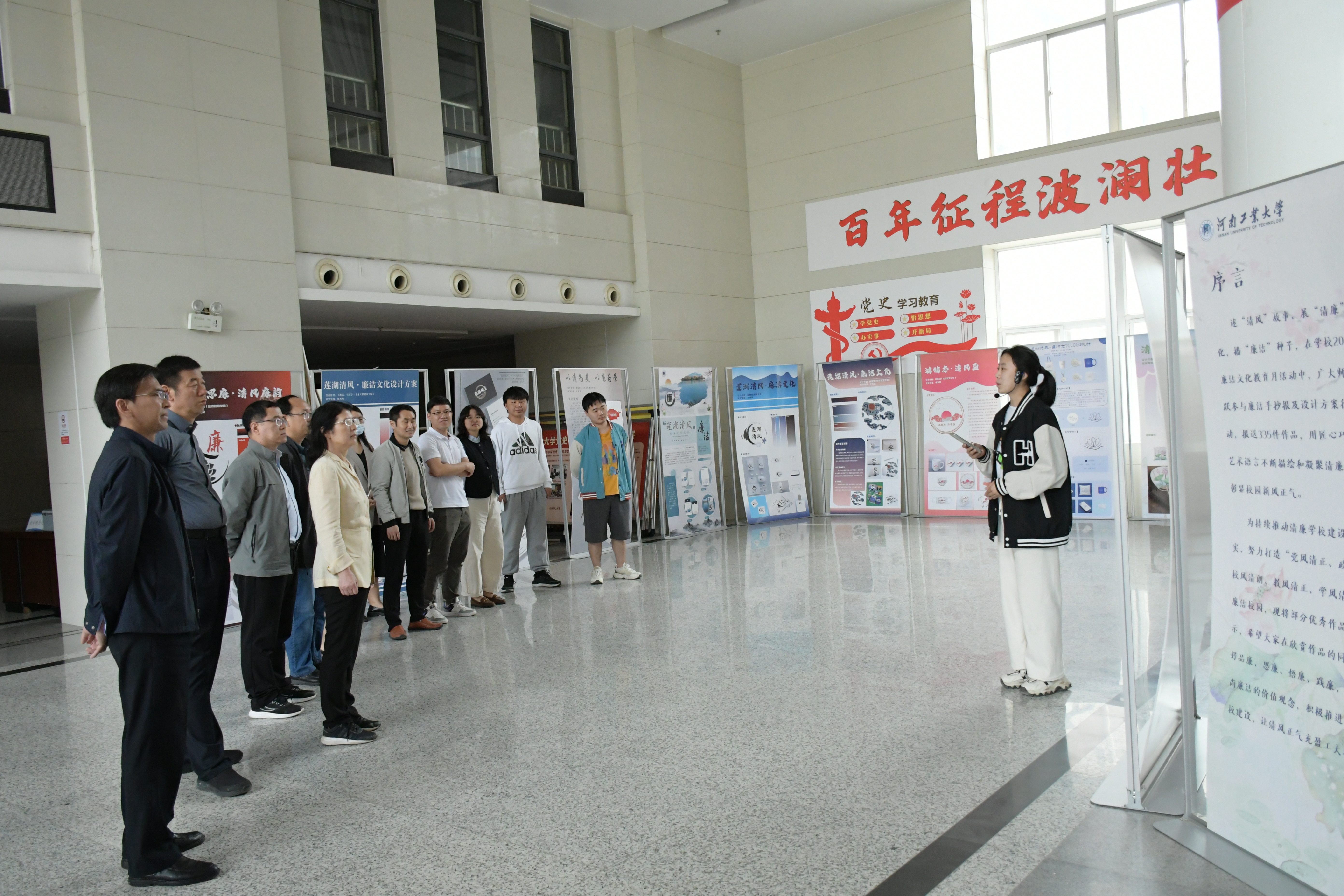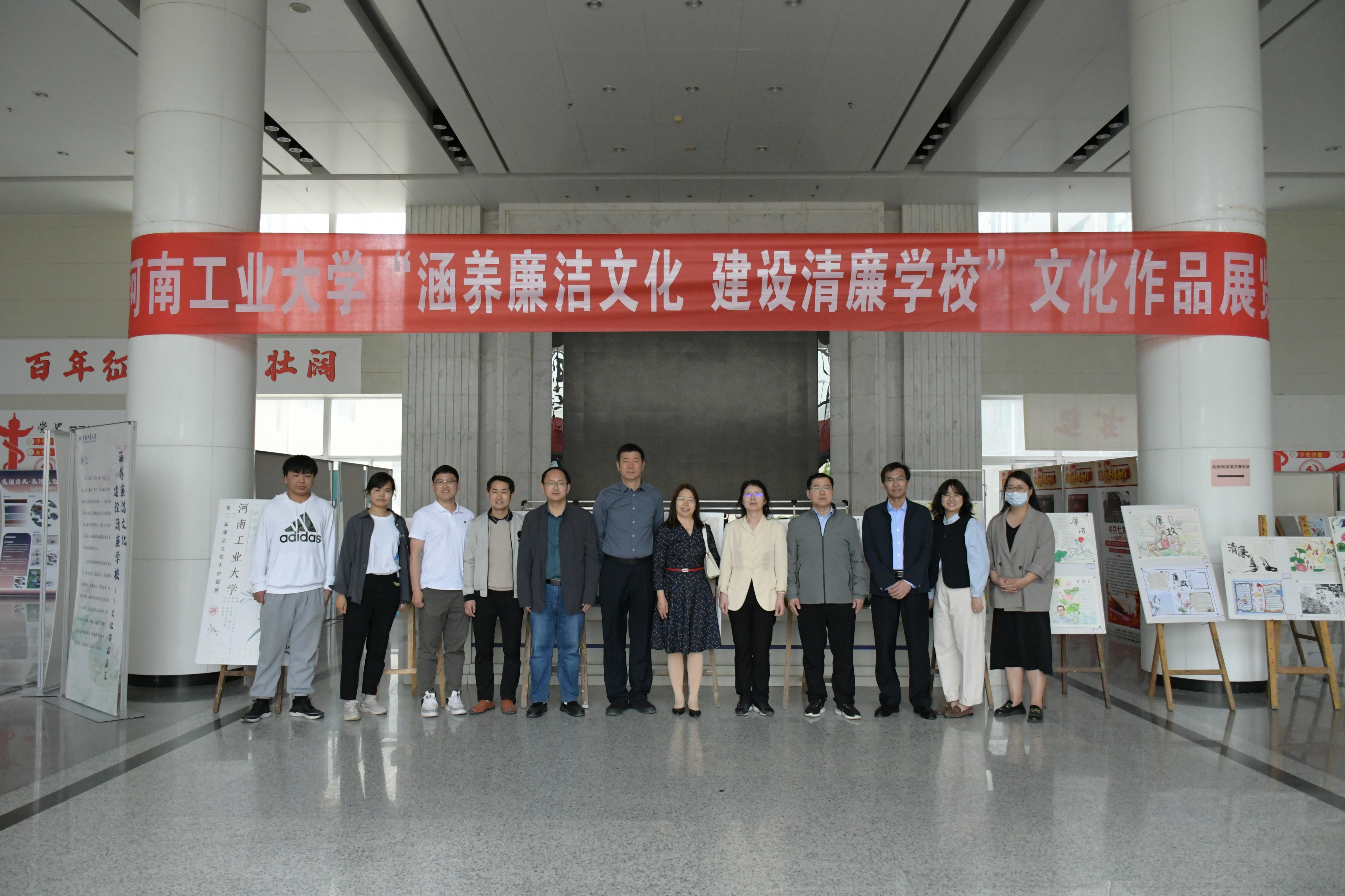 党委书记李刚、院长孙中叶等学院领导班子成员以及师生代表一行到办公楼二楼大厅参观“涵养廉洁文化 建设清廉学校”廉洁文化作品展。