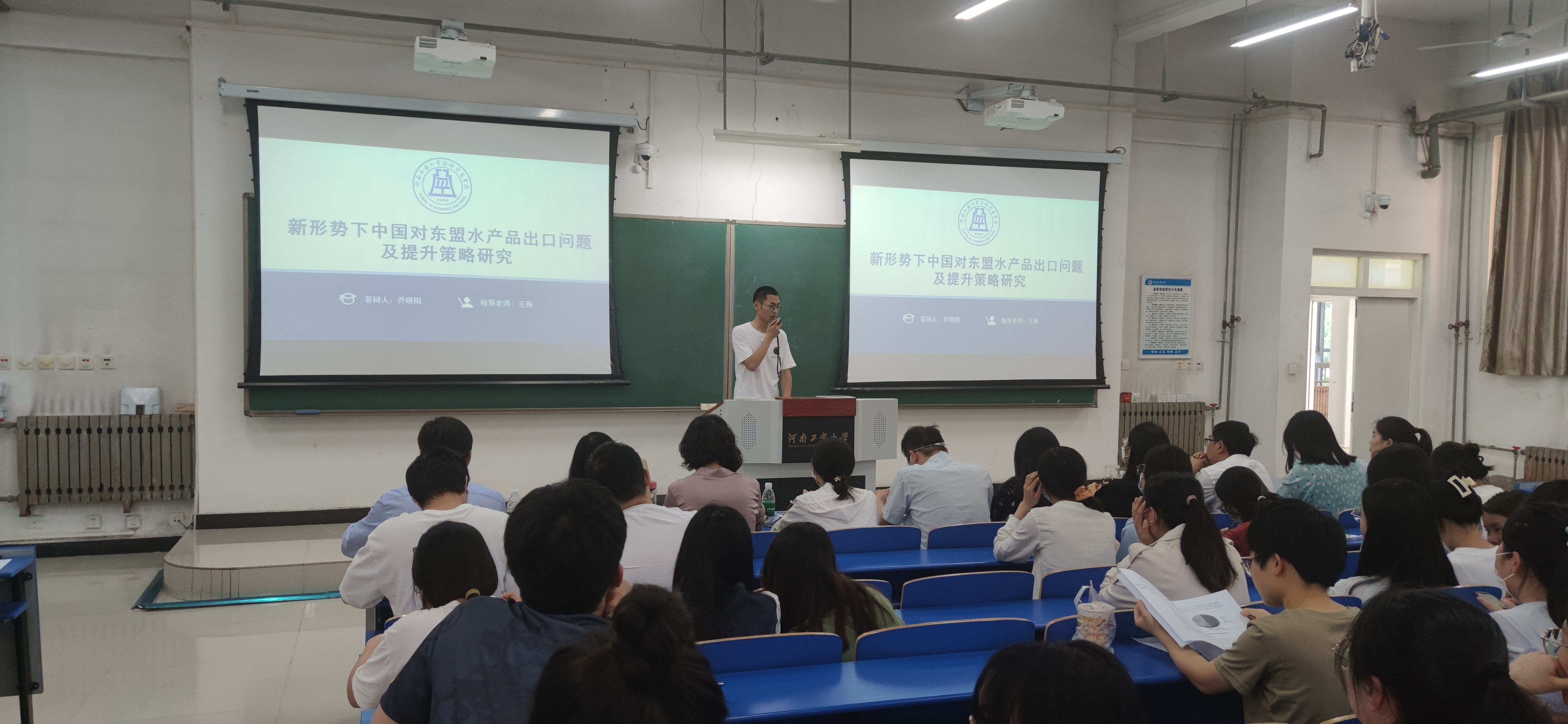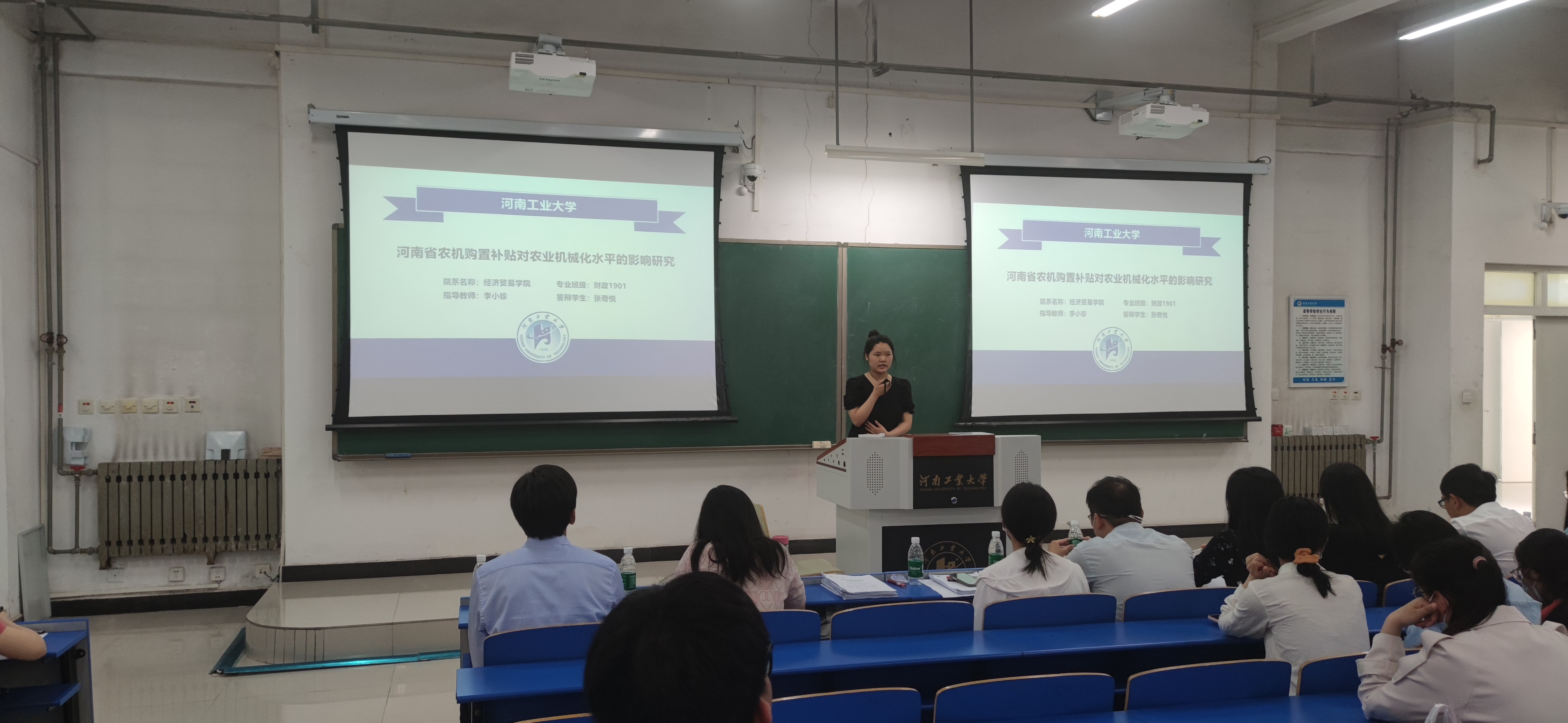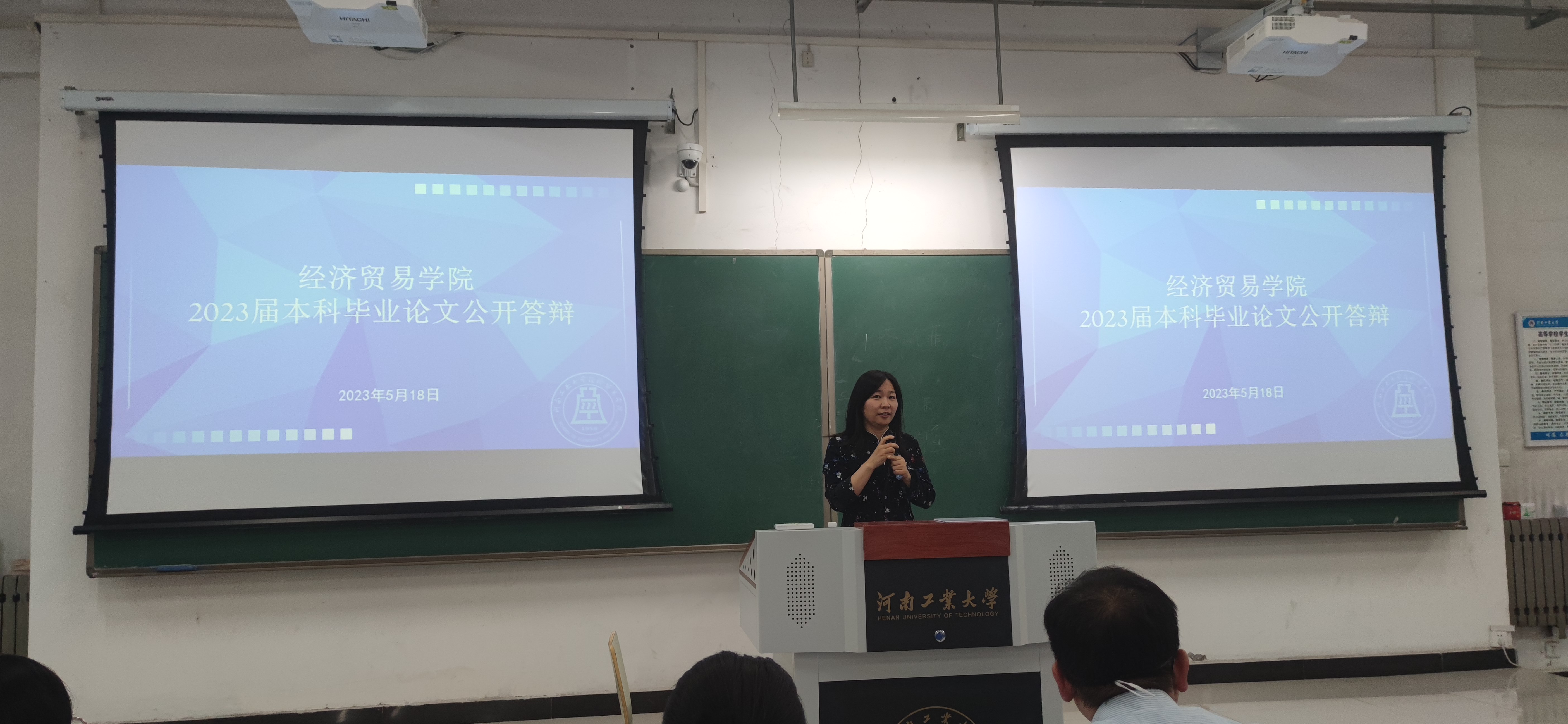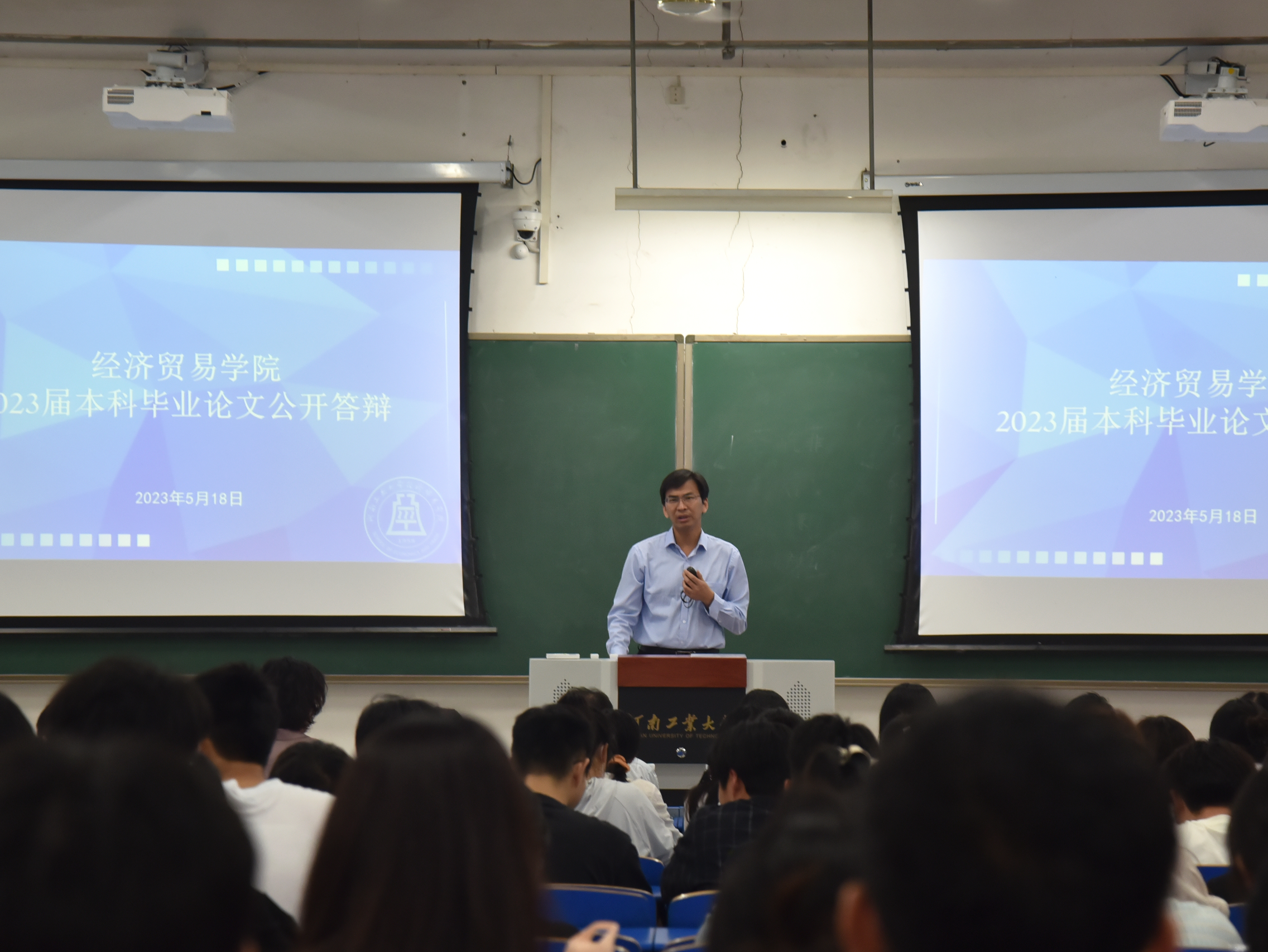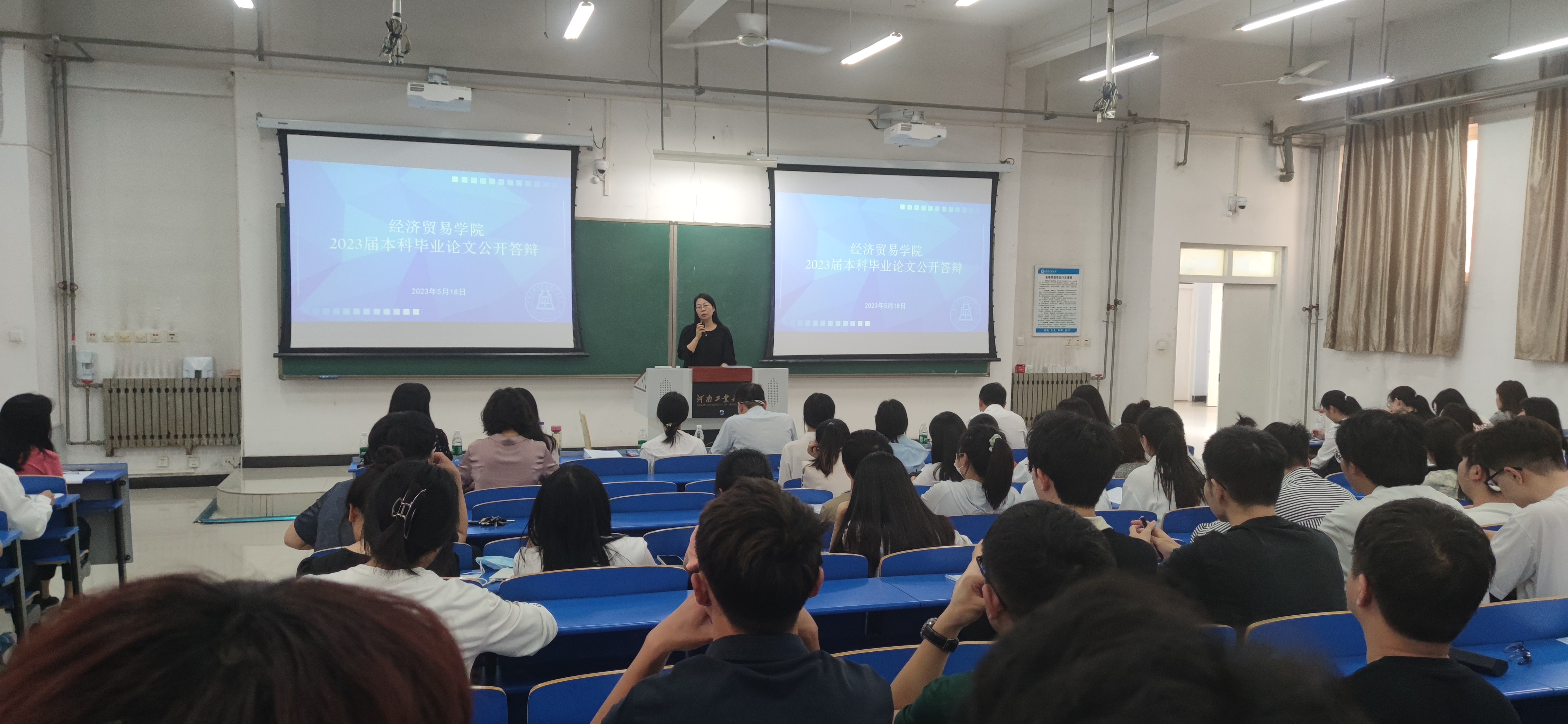于3101教室隆重召开了2023届本科毕业论文公开答辩会。副院长朱坤林、各专业答辩委员、指导老师以及2023届本科毕业生参加了会议,会议特别邀请校督导专家赵玉娟老师和戴晓鹂老师进行点评。会议由教学办主任李进霞老师主持。