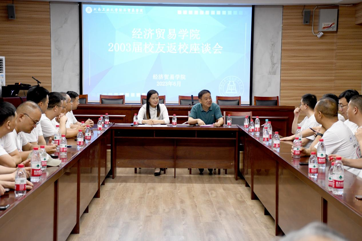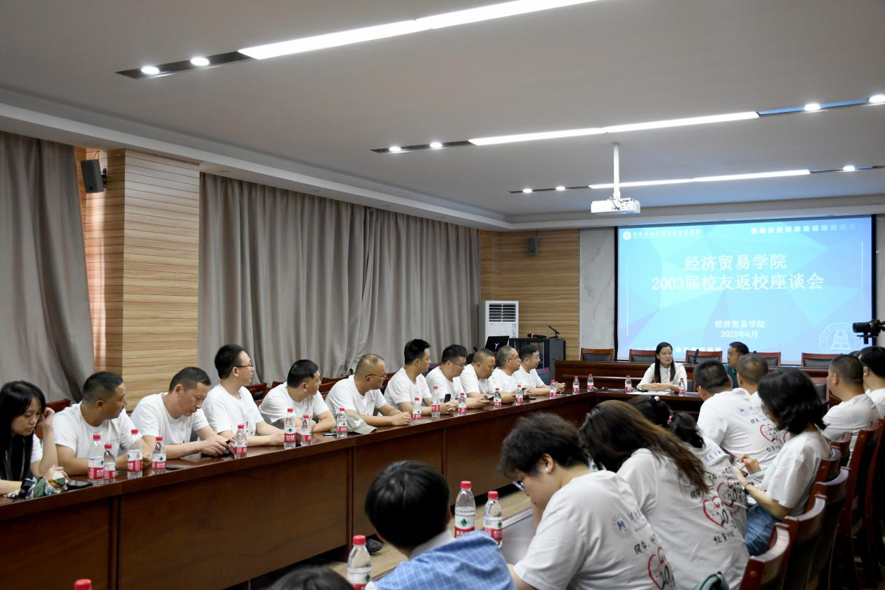 2003届校友开展返校活动,在参观嵩山路校区和莲花街校区后,下午在3605会议室举行校友座谈会,重温同窗梦,畅叙师生情。校友办副主任赵强、院党委副书记岳鹏珍、康涌泉老师、任新平老师参加此次座谈会。座谈会由岳鹏珍主持。