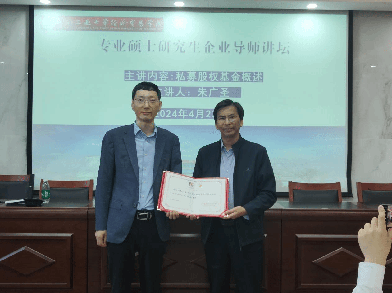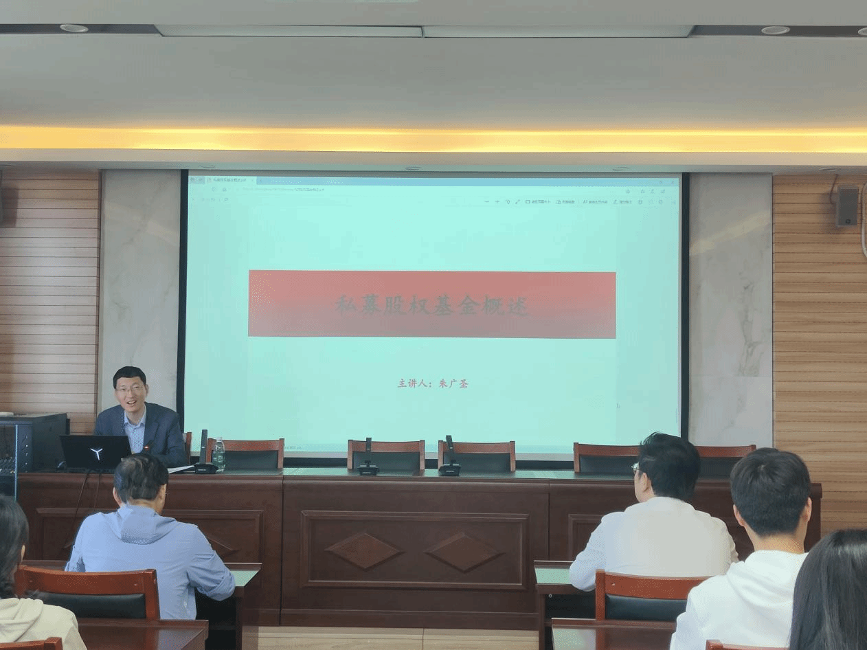 金融硕士企业导师。朱广圣从私募股权基金的基本概念、发展历程、运作机制、投资策略以及市场前景等方面展开,深入剖析了私募基金的运作机制与实务技巧。汇报结束后,参会研究生纷纷提出对私募基金的困惑与问题,朱广圣一一进行详细解答。