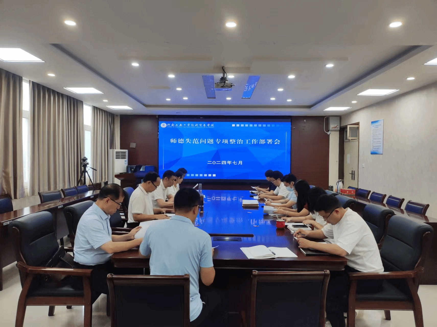 在3501会议室召开师德失范问题专项整治工作部署会。学院全体中层参加本次会议,会议由学院党委书记李刚主持。