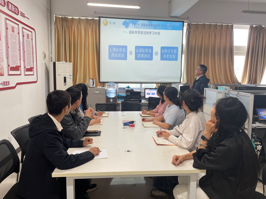 为提升青年教师教学能力,帮助青年教师站稳讲台,9月24日下午,国贸系教研室开展青年教师教学展示活动,由国贸系青年教师李川川老师进行教学展示,国贸系部分教师参加。