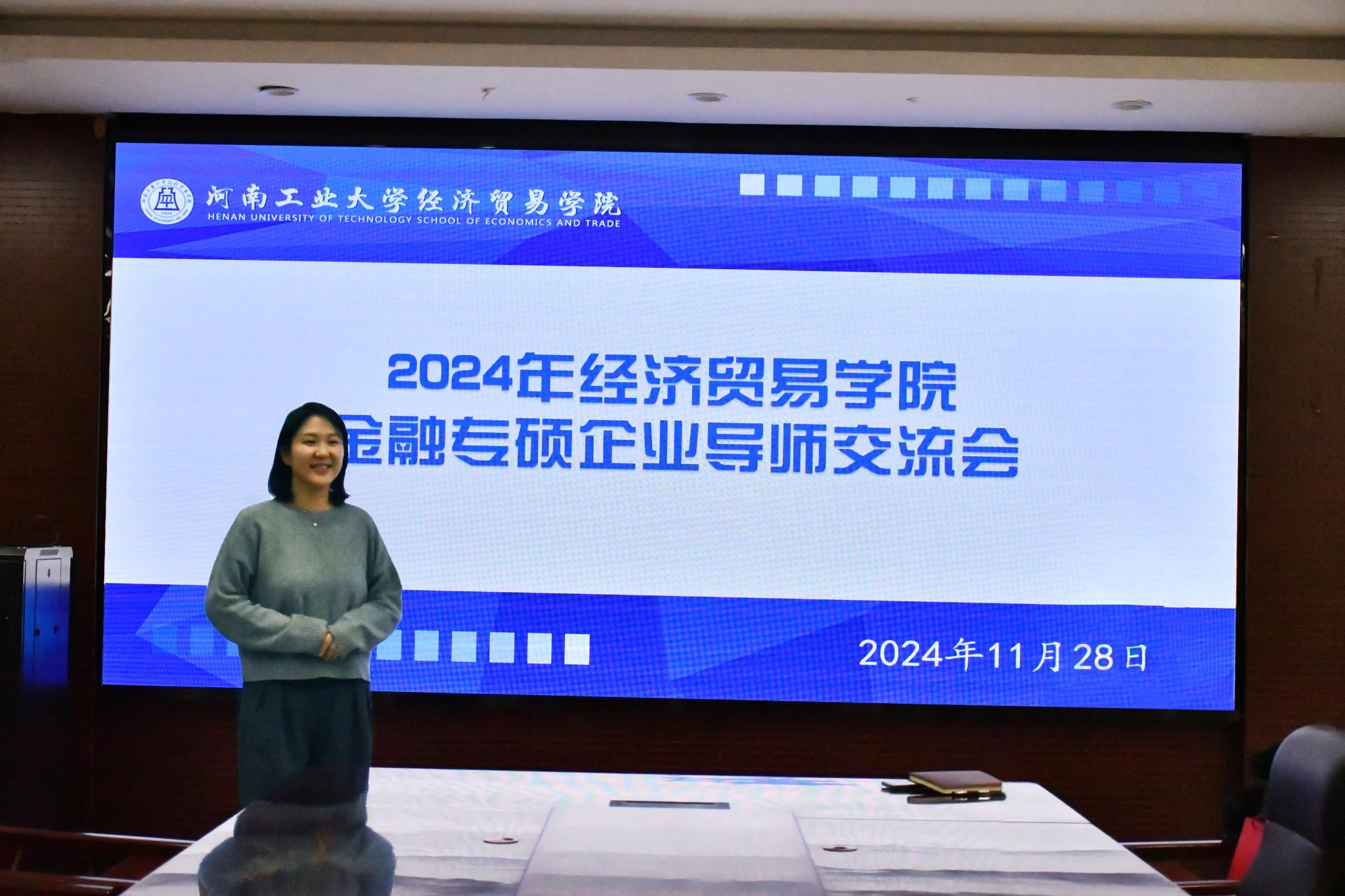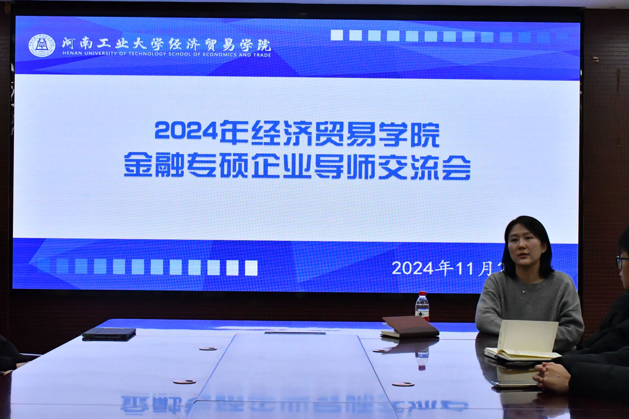 在3501会议室举办金融专硕导师交流会,本次会议邀请到中国农业银行郑州分行白君易女士为学院金融专硕学生分享从业经验。金融专业50余名研究生参与了本次交流会,会议由足球比分网站