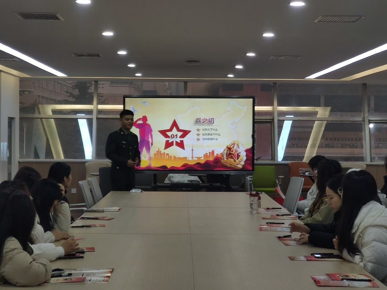 首先,退伍学生王越胜、张该条和杨博结合自己的军旅生活,分享了参军入伍对个人成长、家庭荣誉、社会贡献等方面的积极影响,让同学们深刻感受到了参军入伍的崇高使命和光荣责任,并表示部队是青年学生成长成才的大学校,是砥砺品格、增强意志的好课堂,是施展才华、成就事业的大舞台。退伍学生于欣路解读兵役义务与大学生应征入伍政策,重点介绍了高校大学生应征入伍特有的优先考学提拔、补偿学费、退役后享受就学就业优惠等优抚政策,就同学们关心的事项进行了解答。