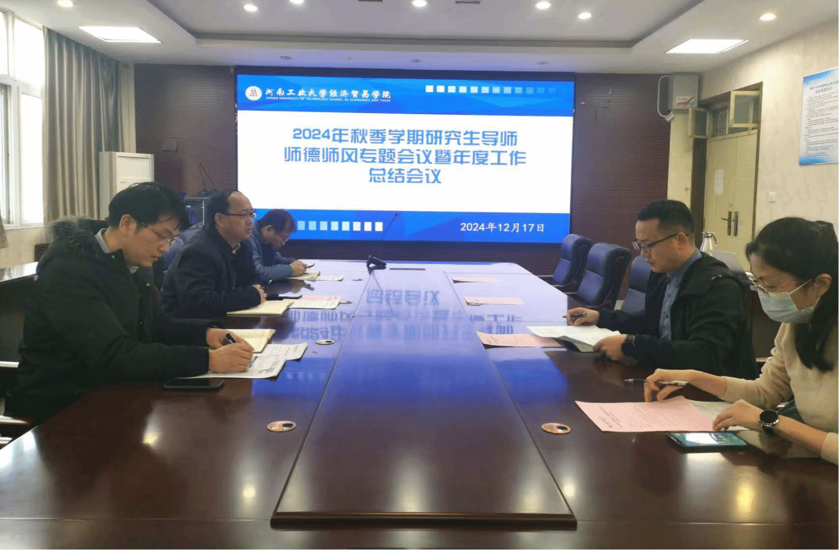 副院长程晓林分享了2024年师德师风典型案例,并对2024年学院研究生工作情况进行了总结。何宇鹏、樊慧玲、宋博、程晓林老师依次汇报了农业管理、国际商务、金融、数字经济四个专业硕士点的国内建设情况。最后,李文启主要从研究生分类培养、培养方案修订及教学规范三个方面,对2025年研究生重点工作进行部署。