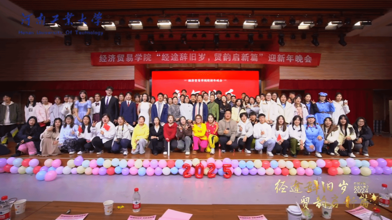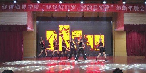 在学生事务中心25201多功能活动厅隆重举行了主题为“经途辞旧岁,贸韵启新篇”的迎新年晚会。院党委副书记岳鹏珍,院团委书记王秋瑾,教职工王理,辅导员张瑞玲、陈娜娜、马上上、邱佩瑶,部分学院学生会代表和百余名学生参加晚会。