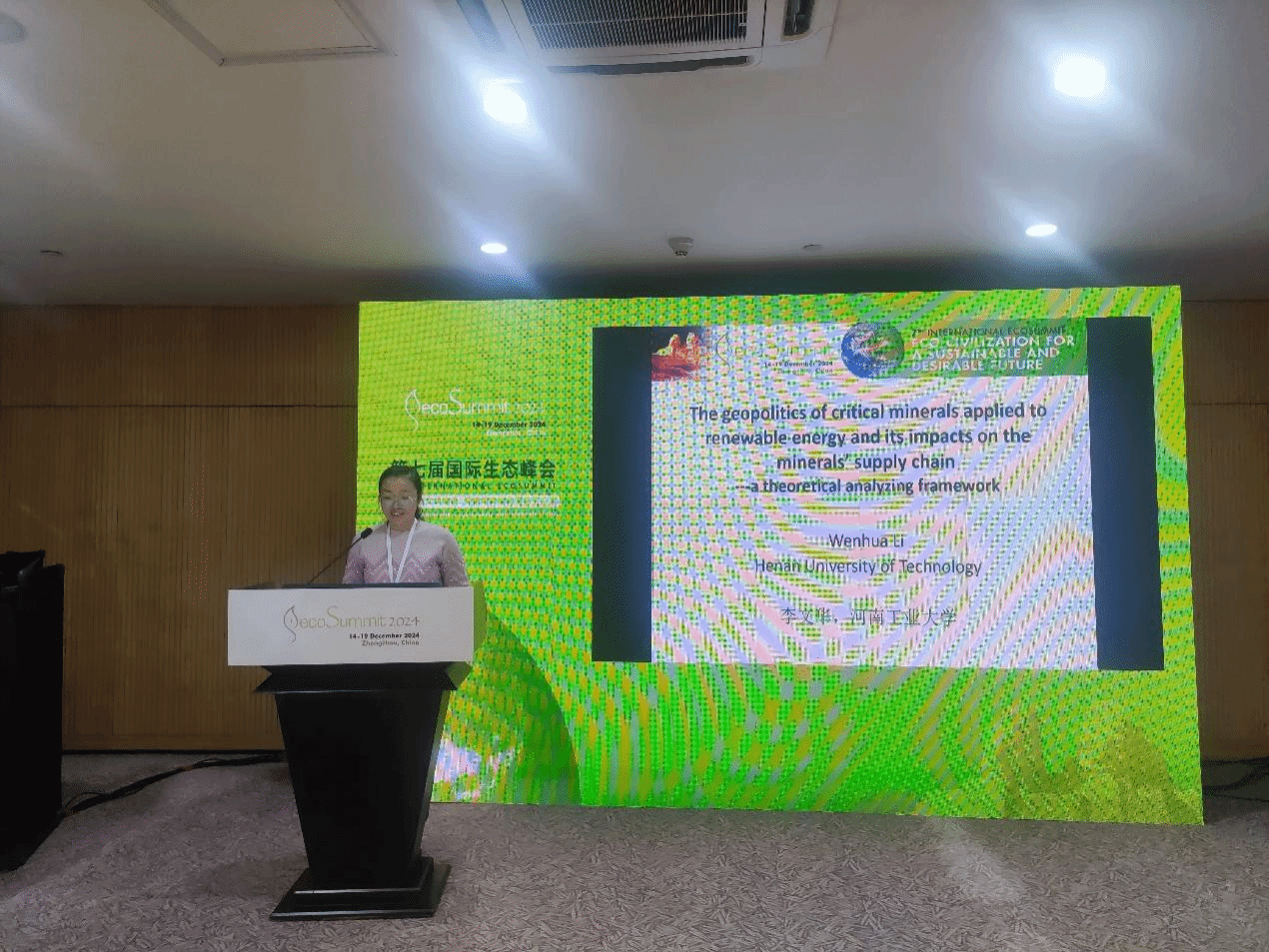 李文华副教授应邀参会,于16日下午做了题为“关键矿产资源地缘政治及其影响”(“The geopolitics of critical minerals applied to renewable energy and its impacts on the minerals’ supply chain---a theoretical analyzing framework”)的主题发言。