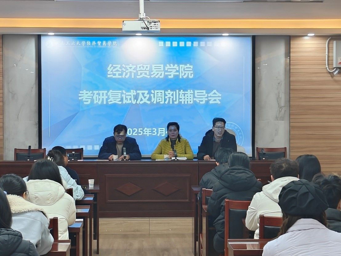 在博识楼3605会议室召开考研复试及调剂辅导会。学院党委副书记岳鹏珍、副院长程晓林、副院长郭力、经济学系主任何宇鹏、金融学系主任宋博、国际经济与贸易系主任樊慧玲、财政学系主任潘美薇和80余名毕业生参加了本次会议。会议由岳鹏珍主持。