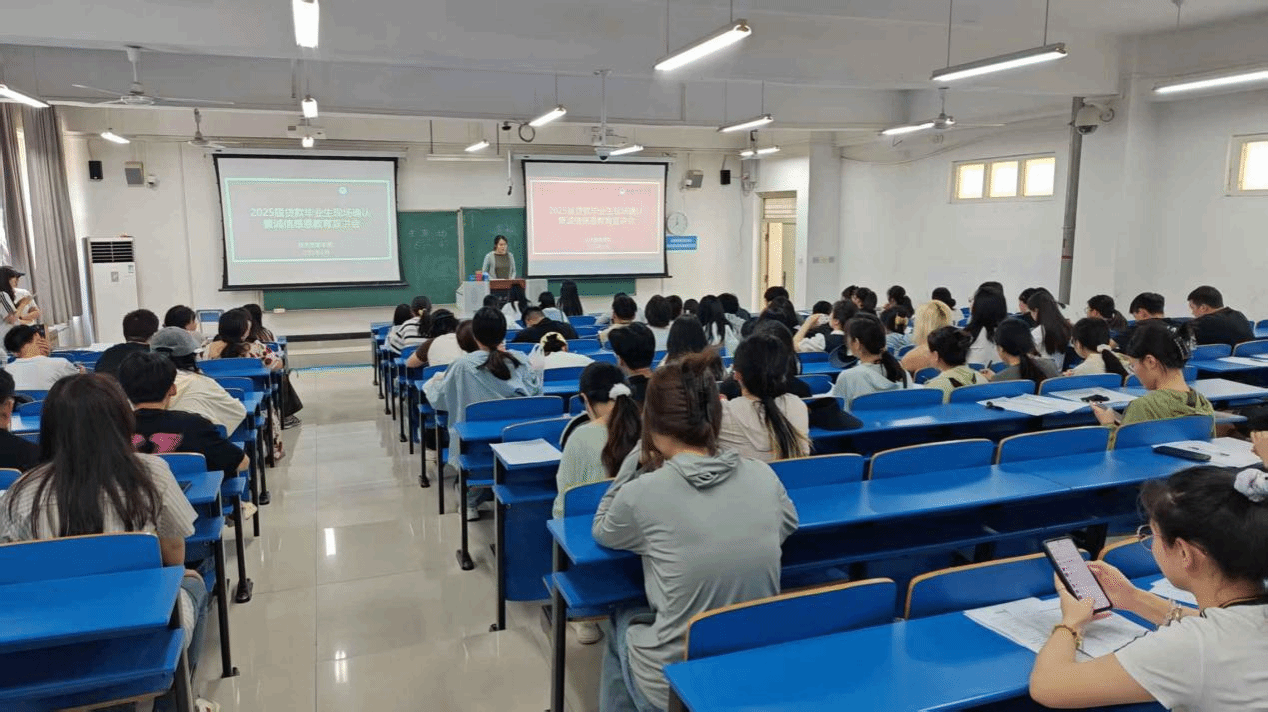 于博识楼3223教室举办了助学贷款毕业生诚信感恩教育宣讲会,2025届助学贷款毕业生参与此次活动。会议由学院辅导员陈娜娜主持。