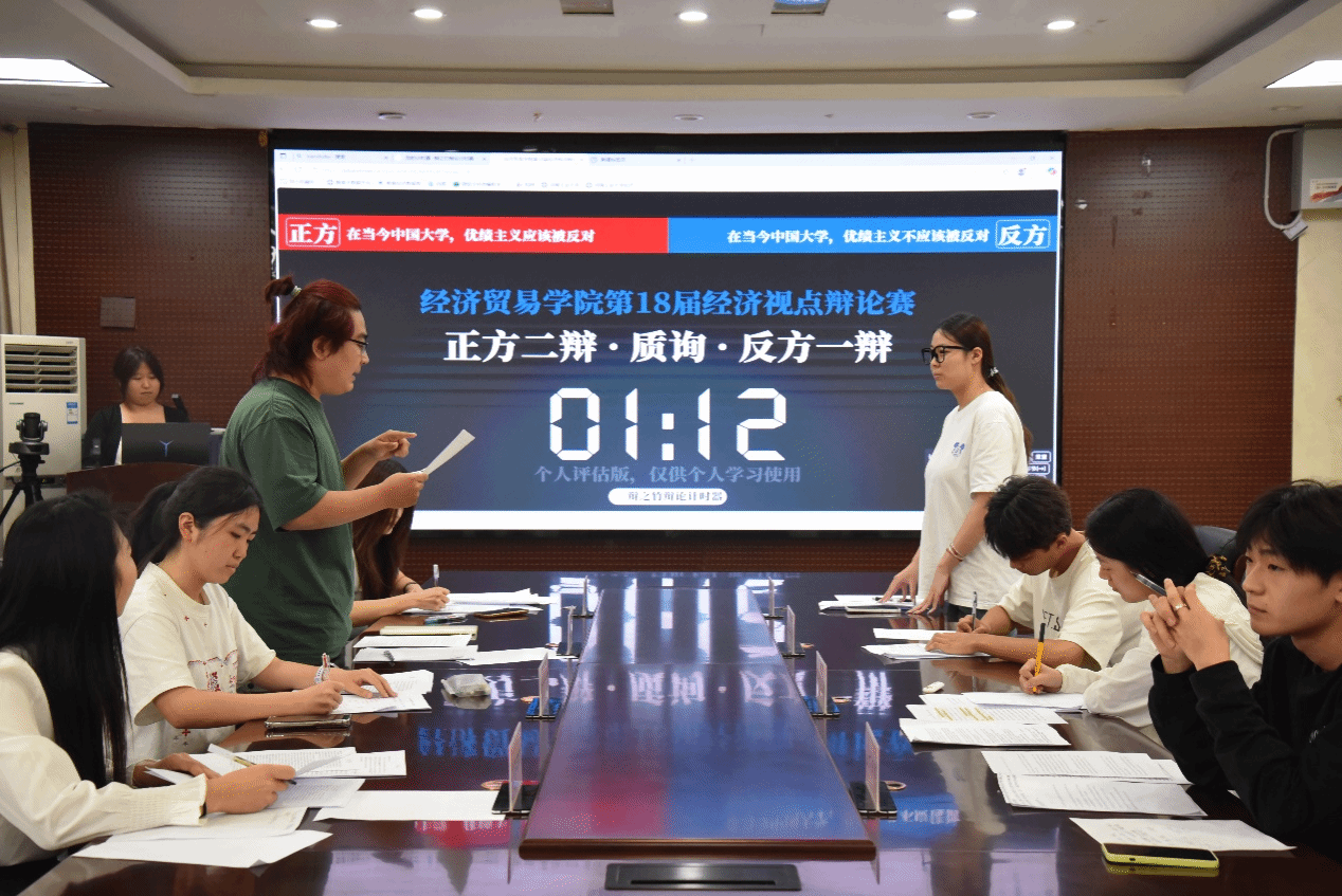 第十八届经济视点辩论赛于博识楼3501会议室举行。本次赛事由金融学系支部书记张维洁、经济学系支部书记侯冰清、国际经济与贸易系支部书记关浩杰、财政学系老师邱佩瑶担任评委,辅导员张瑞玲主持,学院入党积极分子与辩论队成员参与本次赛事。