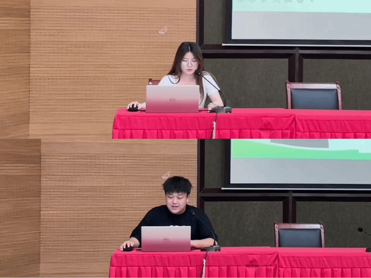随后,2023级暑期社会实践优秀团队代表刘宇涵和贾宇博两位同学分别从自身的实践经历出发进行经验分享,并进行了PPT汇报展示,对团队的社会实践历程进行了详细讲解,为2024级同学提供了宝贵的思路和经验。
