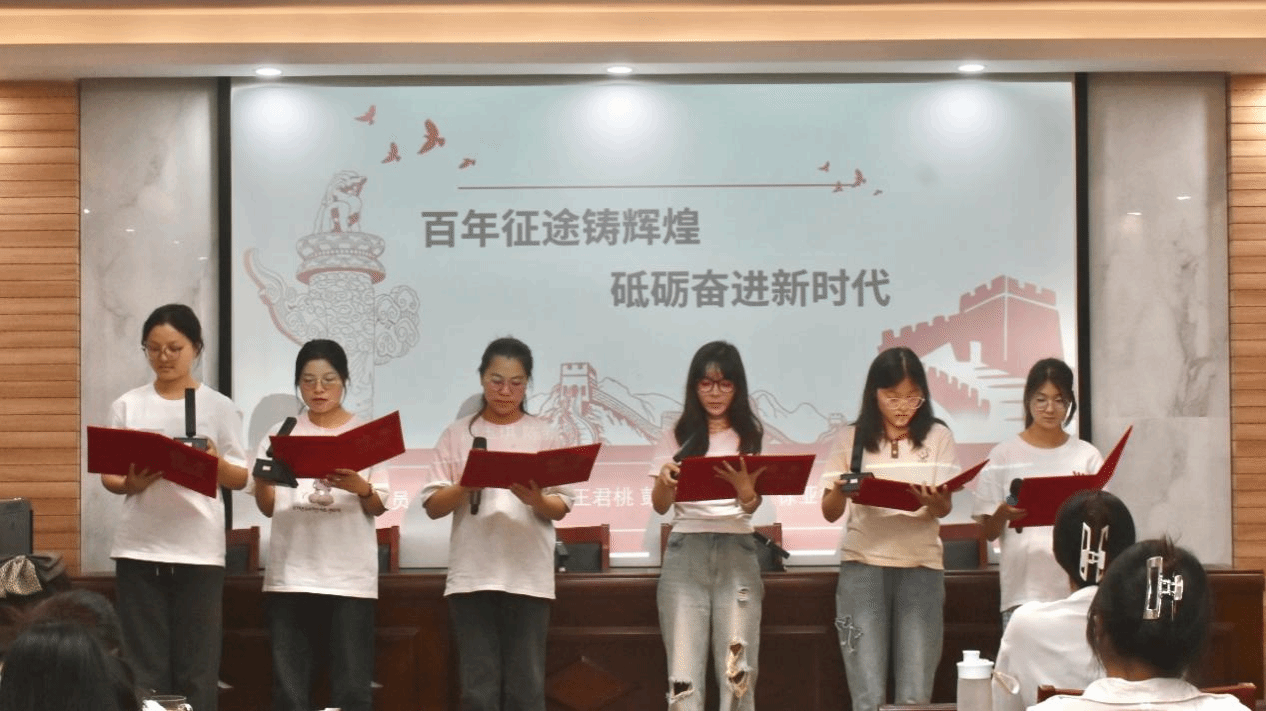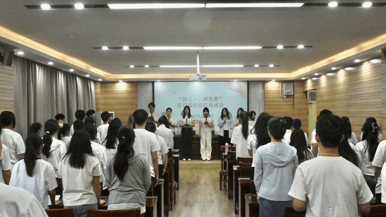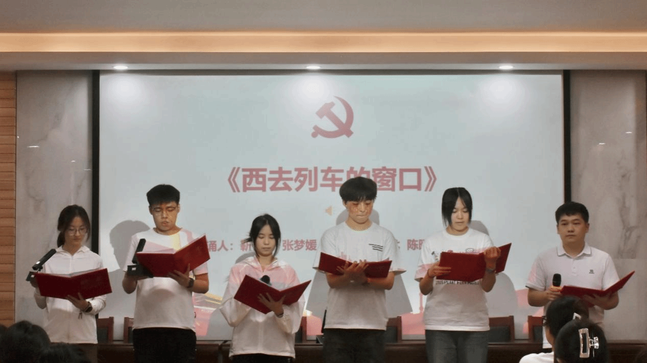 活动在庄严的国歌声中拉开帷幕,全体师生齐唱国歌,以铿锵旋律抒发对党的赤诚之心。随后,红色经典朗诵展示正式开始,八组选手依次用饱含深情地朗诵,带领大家领略红色经典的永恒魅力。其中,《党的礼赞》歌颂党的伟大历程,《不朽》缅怀革命英烈事迹,《何以华夏,何以中国》抒发深沉爱国情怀,《西去列车的窗口》展现西行壮举与时代变迁,《月光下的中国》描绘月下山河的静谧与文化传承,《跨越百年的承诺》彰显岁月坚守与未来展望,《红船颂》歌颂红船承载的革命初心,《中华颂》赞美中华民族的辉煌成就与历史荣光。选手们声情并茂地演绎,让现场观众仿佛置身于那段波澜壮阔的红色岁月,深刻感受到先辈们的崇高精神和坚定信念。