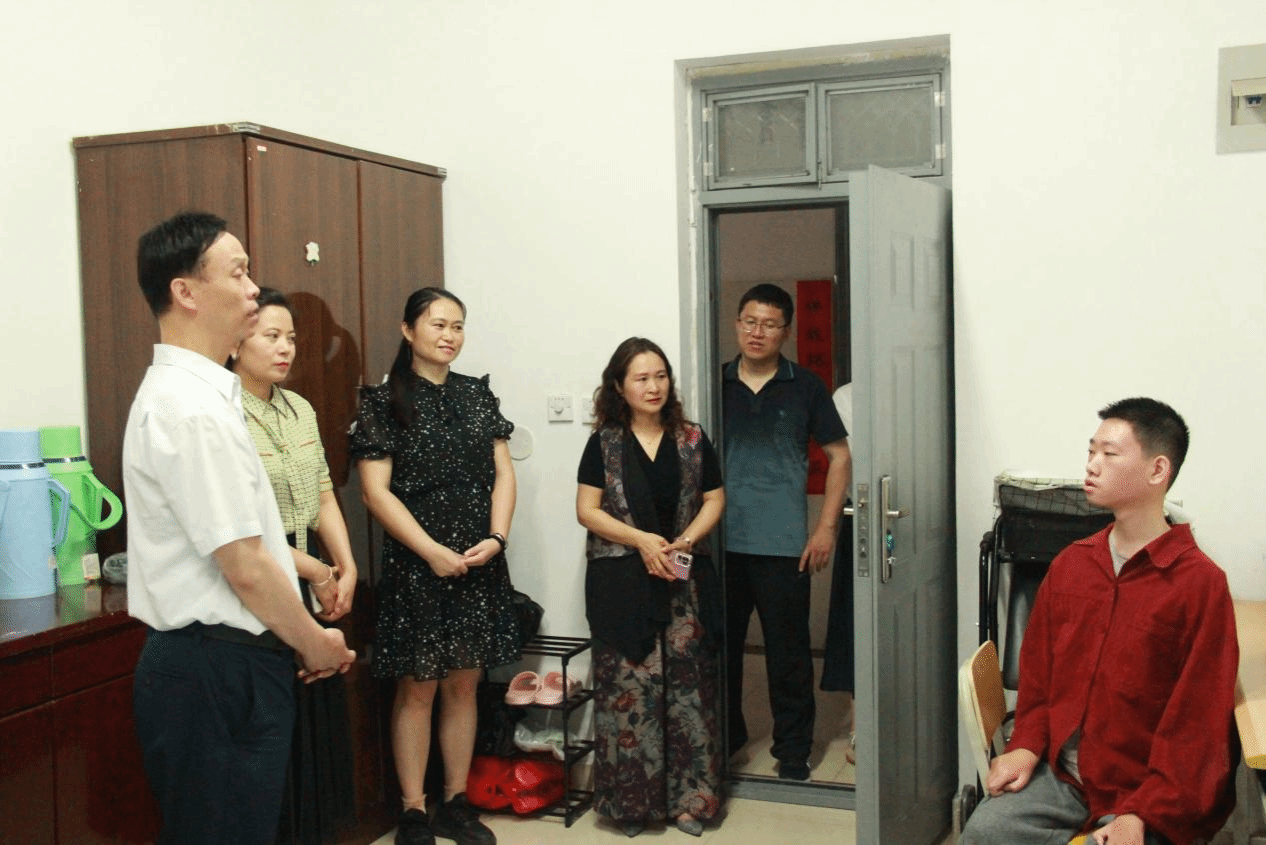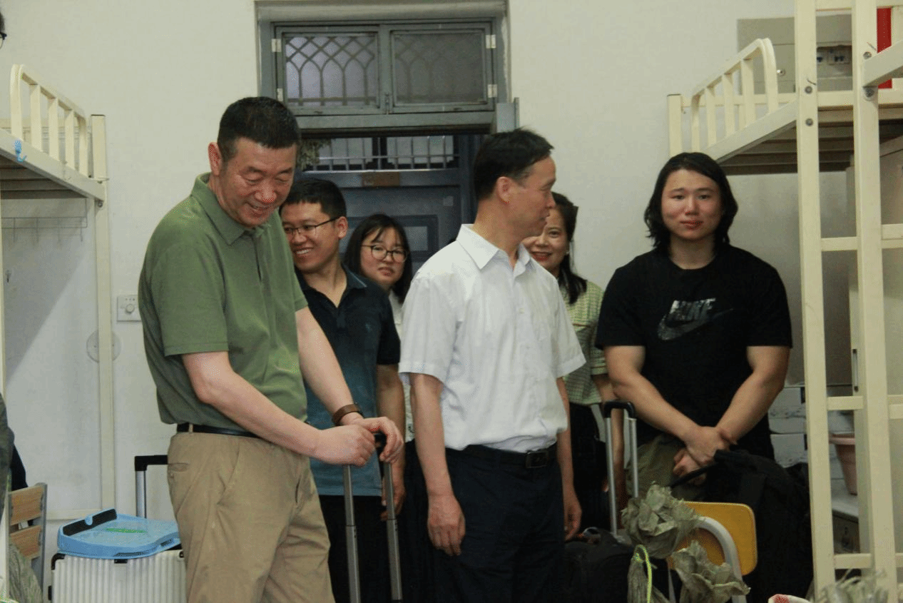 搬迁工作完成后,校党委副书记黄泽峰、院党委书记李刚前往勤园F区01座新生宿舍,专程探望2024级学生汪强。交谈中,黄泽峰询问了汪强的生活、学习情况,鼓励其保持积极心态,勇敢克服挑战。同时深入查看宿舍设施配备,细致了解学生对新环境的适应情况,与学生志愿者展开交流,对同学们在搬迁中展现的互助精神给予高度肯定,寄语大家以积极姿态融入新环境,在新的学习生活场景中绽放青春活力。