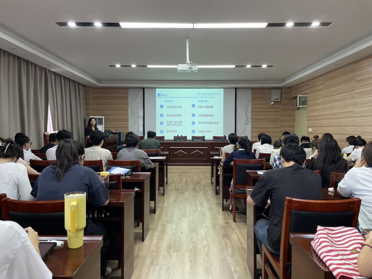 讲座以“科研启航,信息赋能”为主题,围绕研究生在学术研究中如何高效利用数字资源展开系统讲解。杨君从文献查找、文献管理、英语写作辅助、AI助力科研等多个方面,为同学们提供了一场内容丰富、实用性强的学术资源利用指南。
