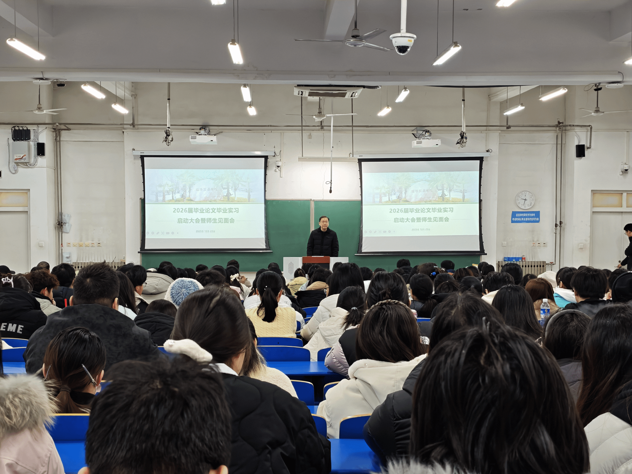 在3号楼101教室召开2026届本科毕业论文、毕业实习启动大会暨师生见面会。会议由副院长郭力主持,2026届全体本科毕业生及毕业论文指导教师参加了会议。