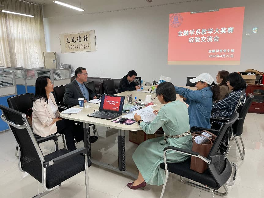 第十五届教学大奖赛实施方案》部署要求,4月23日下午,金融学系在3416开展了教学大奖赛系室预赛活动。会议由金融学系主任宋博主持,邀请了戴晓鹂、李绍玲、汪来喜三位具有丰富教学比赛经验的老师担任评委。