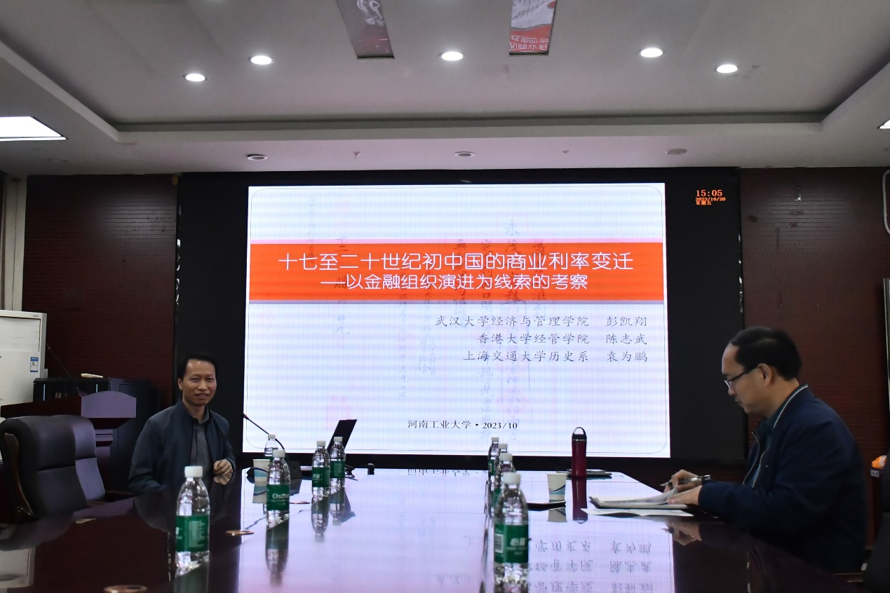 “双周论坛”第3期在3501会议室开讲,武汉大学经济与管理学院教授、博士生导师彭凯翔应邀作学术报告,报告会由足球比分网站