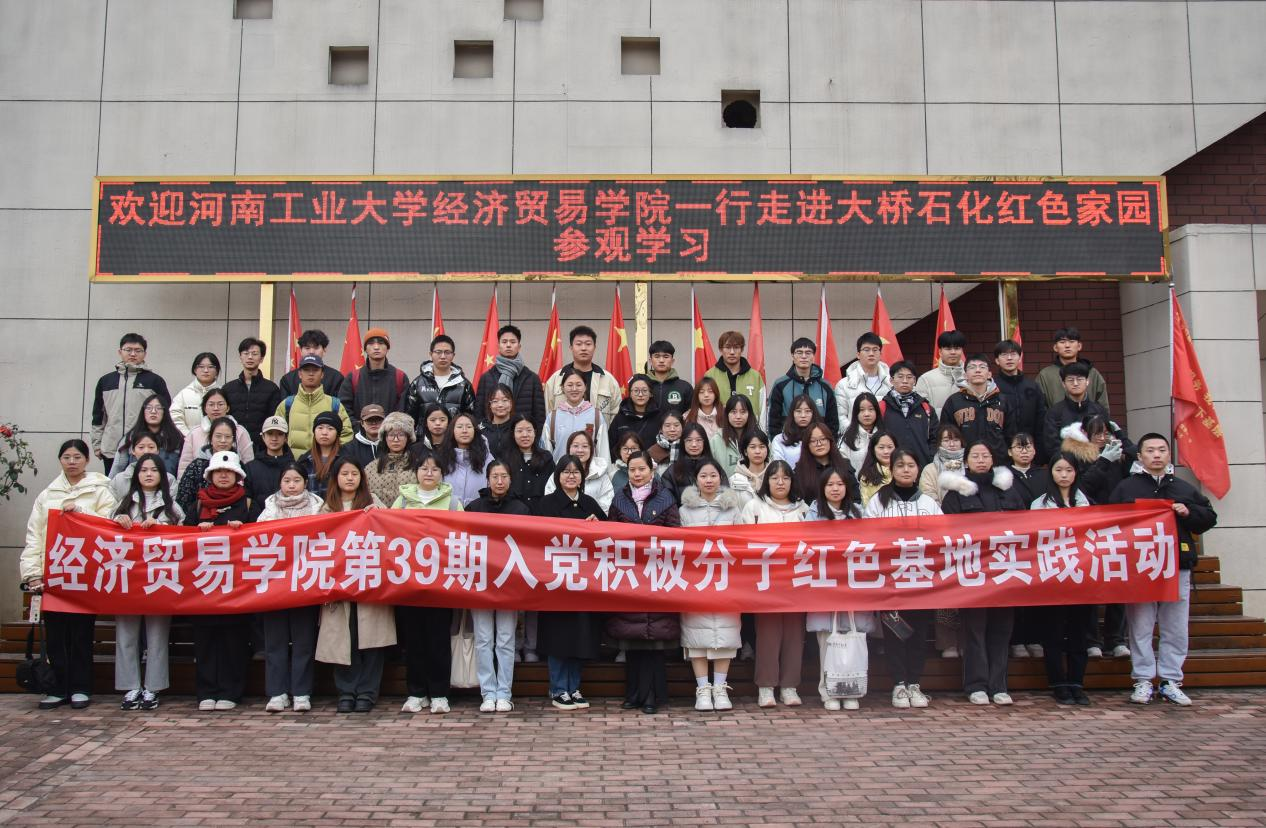 为促进入党积极分子将理论学习与实践锻炼相结合,进一步加强党性教育,11月11日,院党委副书记岳鹏珍、院团委副书记王秋瑾组织带领第39期全体党课学员到大桥石化郑州红色家园教育基地开展学习贯彻习近平新时代中国特色社会主义思想主题教育实践活动。