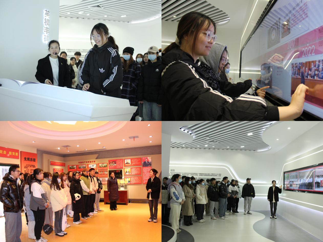 在讲解员的引领下,学员们先后参观了红色家园各处展馆,近距离地感受党建引领下大桥石化的发展。在党建展馆,学员们回顾党的光辉历程,了解了大桥石化始终听党话跟党走,坚持党建与业务相融合的企业理念。在科技感十足的电教馆,学员们沉浸式体验了三联屏、实体翻书机、3D实体拍照等先进设施,纷纷表示电教馆互动性很强,科技性与趣味性融为一体。在演播厅,集体观看了宣传片《党建铸就大桥魂》和《大桥石化25周年庆典宣传片》,并聆听红色家园负责人田道君讲述的微党课。他结合自身工作经历及子女教育成长经验,对同学们提出希望,鼓励大家好好学习,提升知识水平,锻炼自身技能,也期待经贸学子未来可以投身大桥石化经济建设发展中。