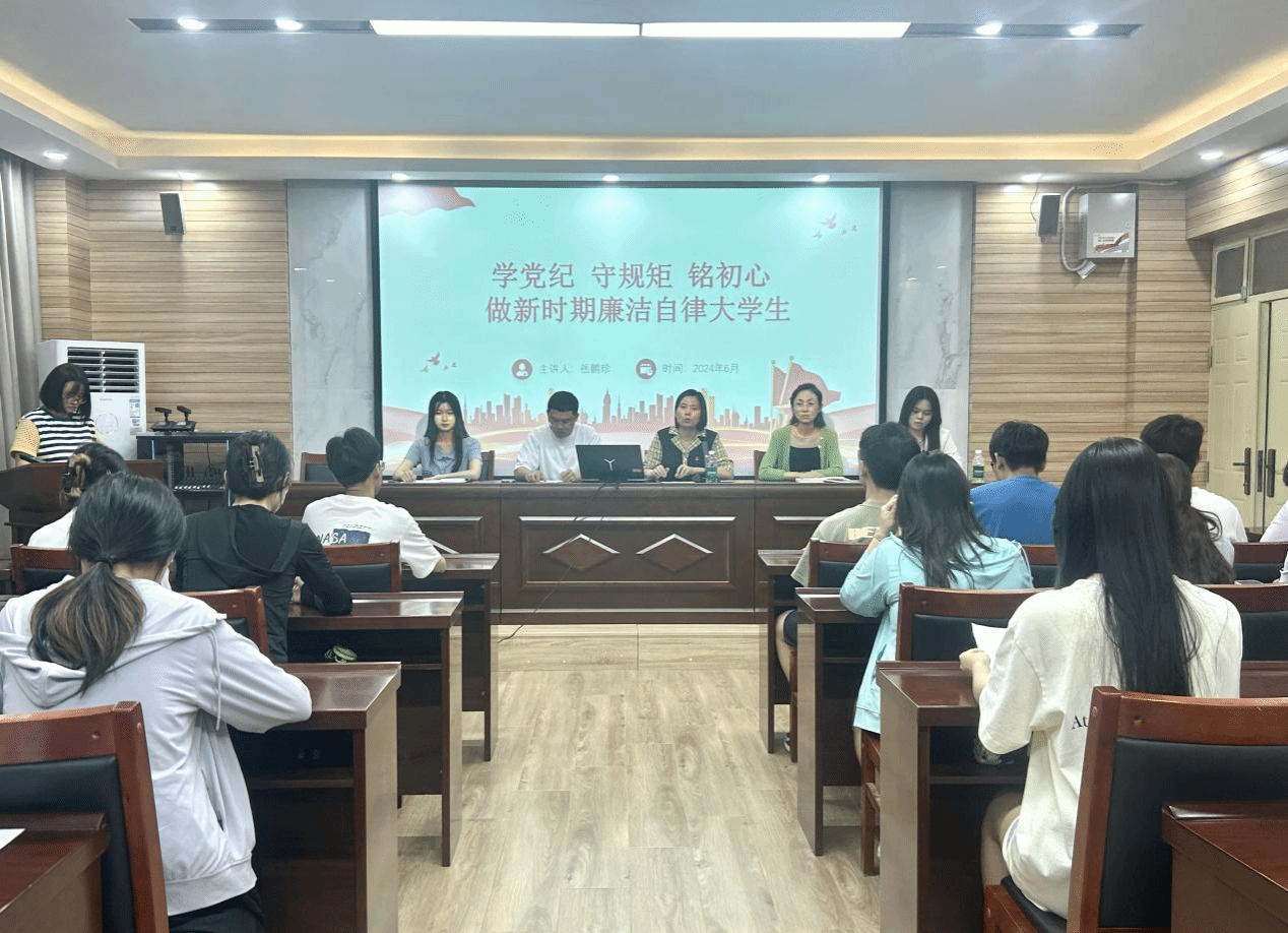 岳鹏珍以“学党纪 守规矩 铭初心 做新时期廉洁自律的大学生”为主题,向全体党员讲授党纪学习教育专题微党课。她阐述了全面从严治党的重要意义,以及纪律建设的重要作用,结合典型案例分析,强调全体党员要不断强化自我监督,做新时代廉洁自律大学生。
