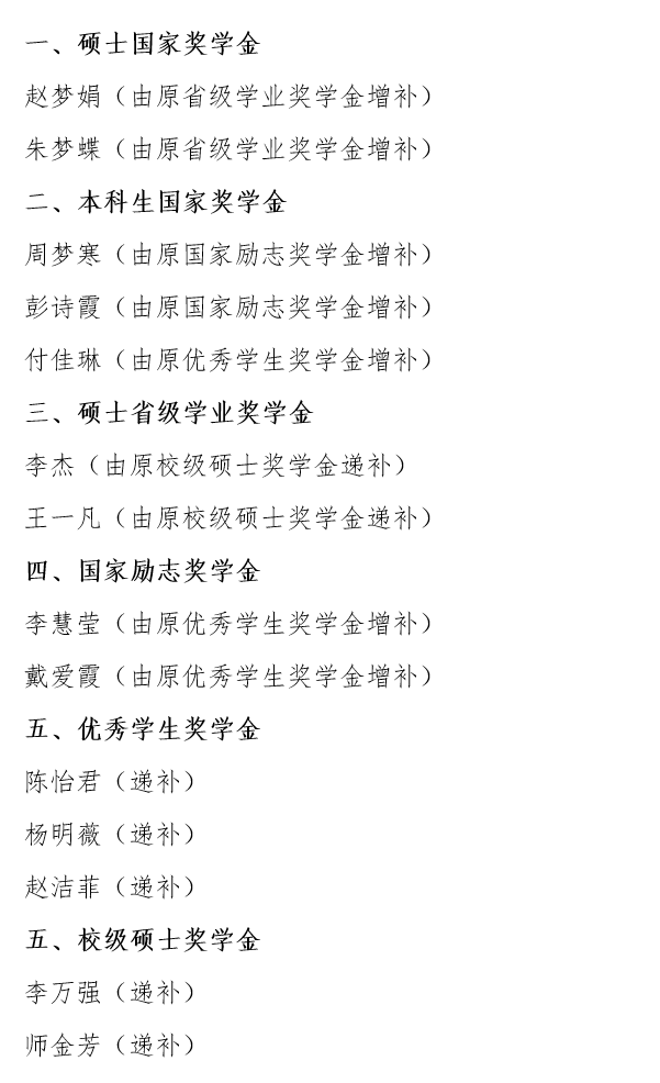 根据《关于调整高等教育阶段和高中阶段国奖奖助学金政策的通知》文件精神,结合学院实际,经学生申请、民主评议、学院初评,2024年最快足球比分网 增补情况见附件:现将初审名单向全院公示5个工作日,公示时间自2024年11月14日18时至2024年11月21日18时公示期间,如有异议,请通过以下渠道向学院反映。