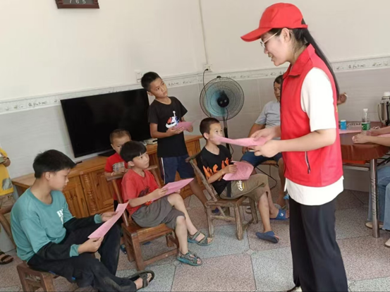 图1 社会实践成员对留守儿童进行安全教育