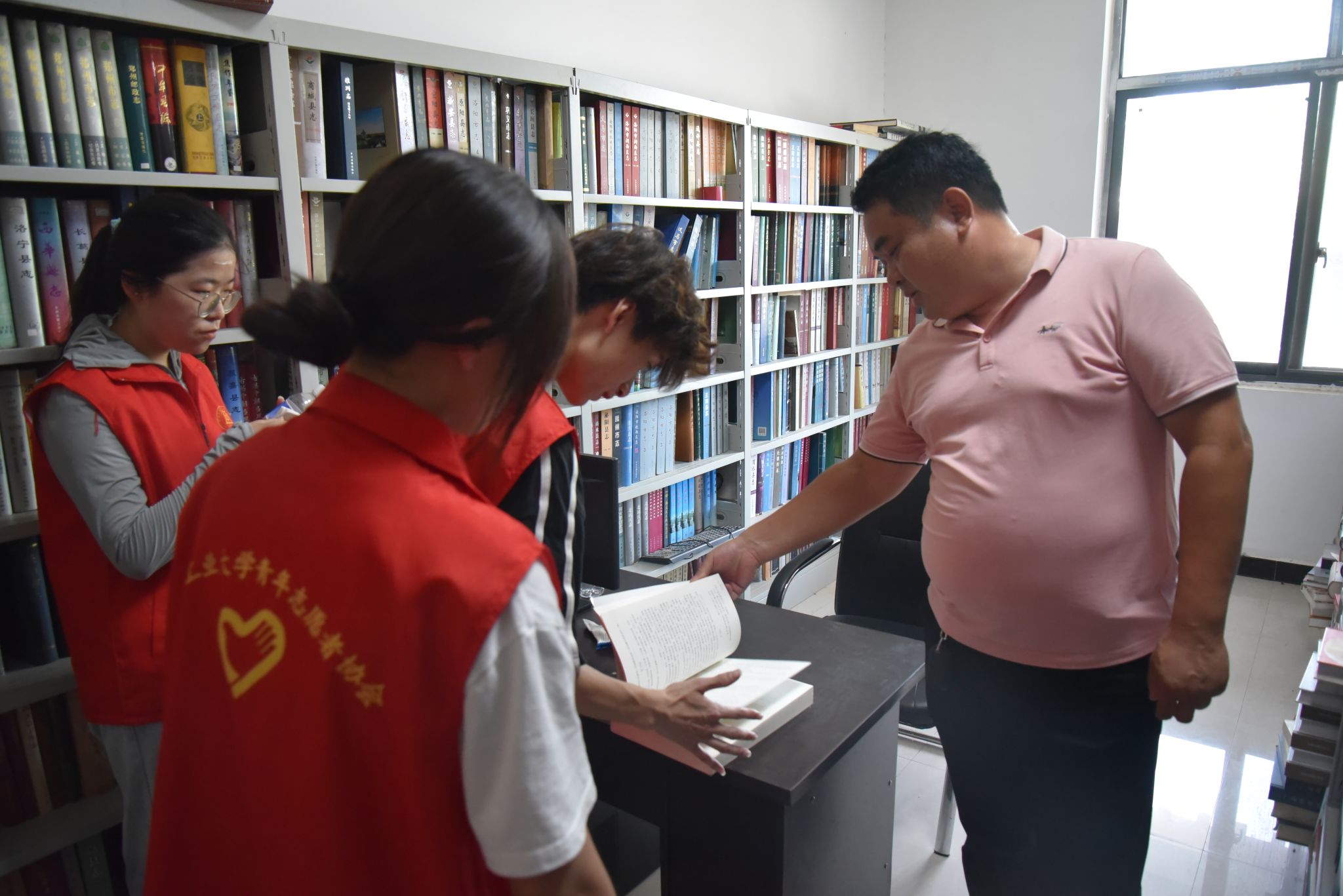 图为村干部向团队成员介绍《班村志》