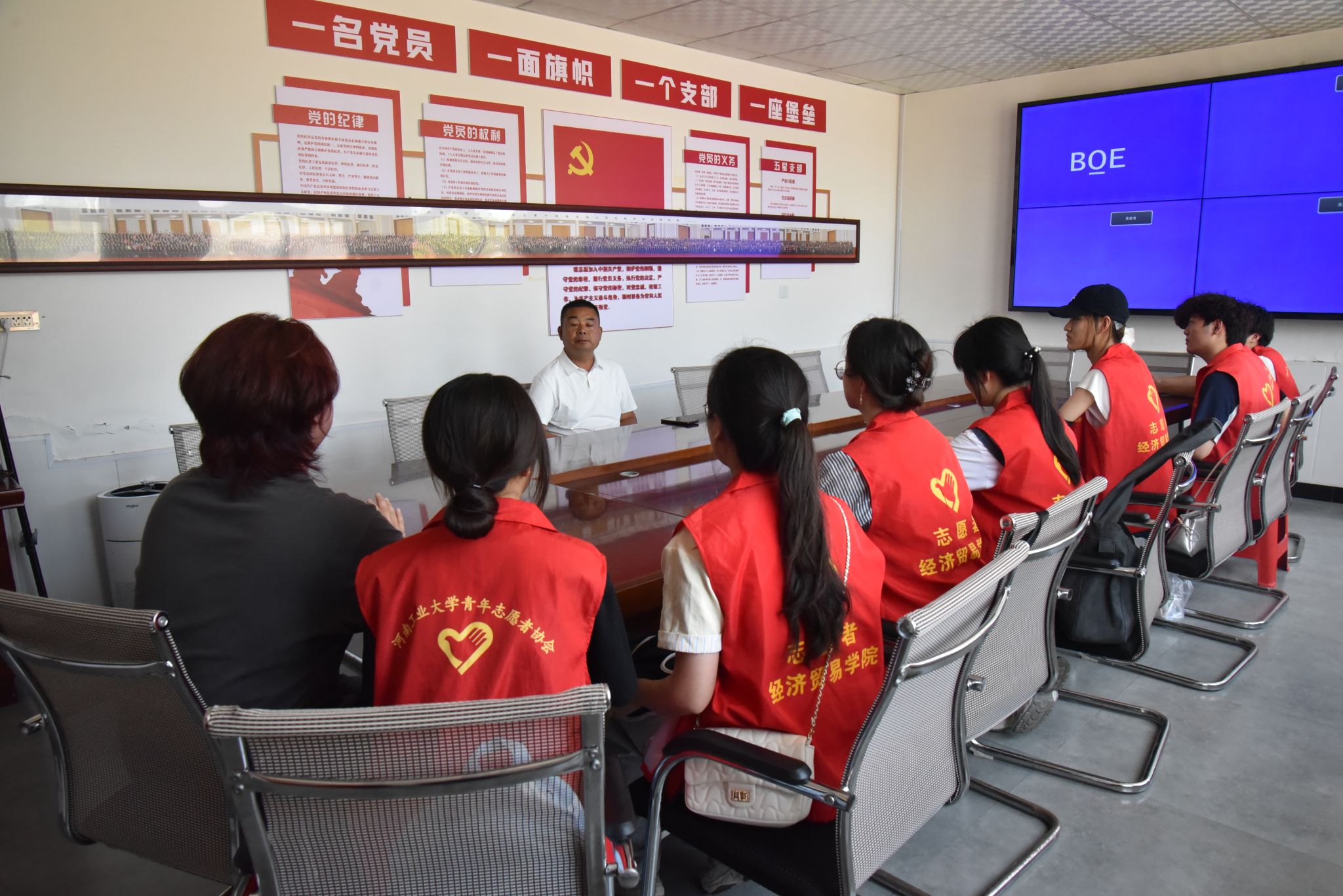 随后,团队成员与白云山村村支书陈保超进行了深入交流。陈保超向实践团介绍了其2018年返乡带领村民发展大棚种植产业的经历。他坦言发展初期面临两大难题:一是村民参与意愿低,首批愿意尝试大棚种植的村民寥寥无几,为此召开了三次村民会议进行动员;二是资金风险顾虑大,初期建设大棚成本高,村民普遍担忧赔本。为破解困局,村支书个人垫资建设首批大棚,并与参与的村民达成“三七分成”协议。据村支书介绍,首批参与的村民在四个月后即获得约一万元收益,示范效应迅速显现。看到实际收益后,原先持观望态度的村民也纷纷要求加入。村集体随之调整模式,采取“村集体建、村民购买”的方式推进。经过三年发展,目前全村已建成大棚一百六十五座,一个大棚年均净收益可达四五万元。