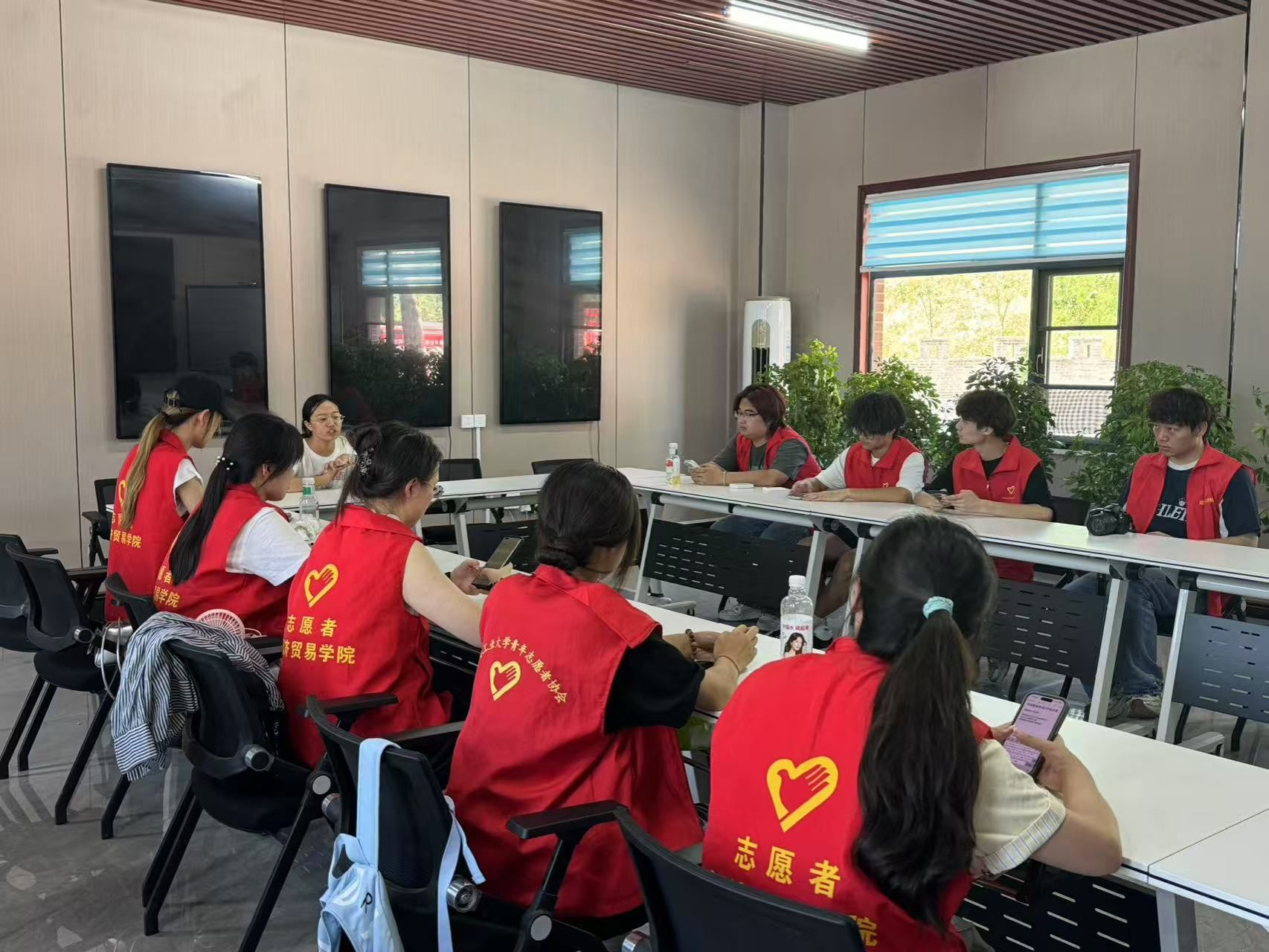 在村委会,实践团与工作人员就乡村发展进行了深入探讨。工作人员详细阐释了付楼村产业融合的蓝图。据工作人员介绍,借助屋顶光伏建设政策的推广以及革命试点县的契机,付楼村探索出了一种创新模式:由村集体公司主导,引入央企投资保障和运营维护,村集体作为运营主体,既保障了收入,又让村民享受到了相对低价的用电。谈及产业升级,工作人员详细介绍了发展路径:以新能源为核心,依托坑塘经济打基础,同步拓展多元产业。借助零碳乡村建设的东风,挖掘本地文化和农业资源,谋划文旅融合发展,构建“新能源+生态+文旅”的内生循环体系,为乡村振兴注入持久动力,这让实践团对付楼村的发展逻辑有了清晰的认知。