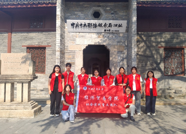 图为团队成员在中共中央鄂豫皖分局旧址前的合影