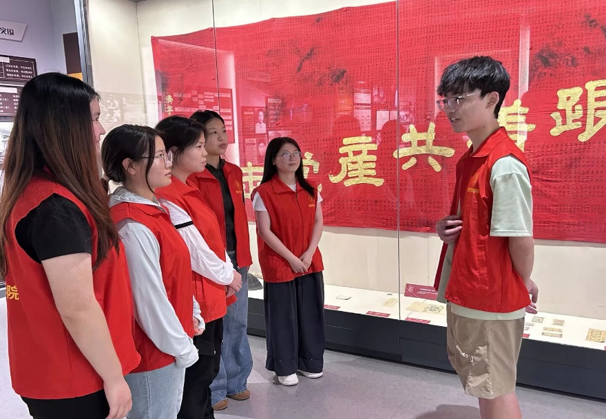 随后,团队成员前往鄂豫皖苏区首府革命博物馆,参观了馆内陈列的文物,并细致观察了每一件刻着时间痕迹的旧物。团队中,一位对鄂豫皖革命历史很了解的同学为其他成员进行讲解,了解革命历史后,团队成员深受感触。