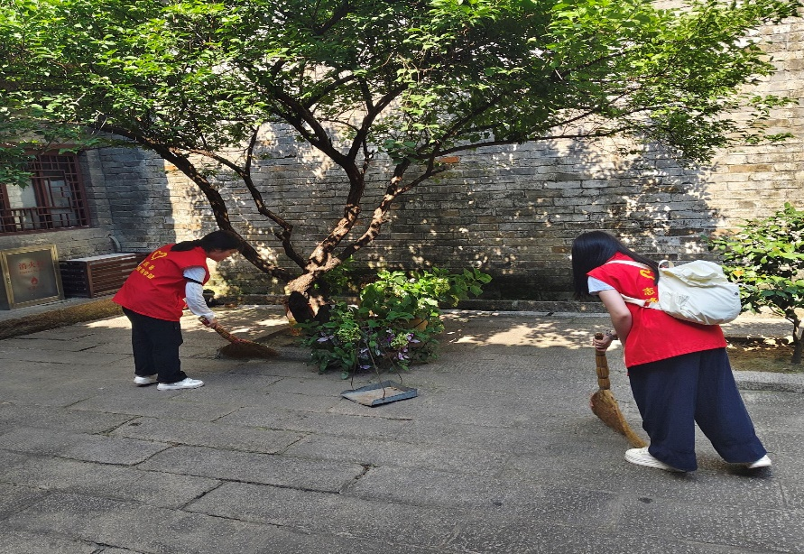 图为团队成员在旧址内打扫卫生