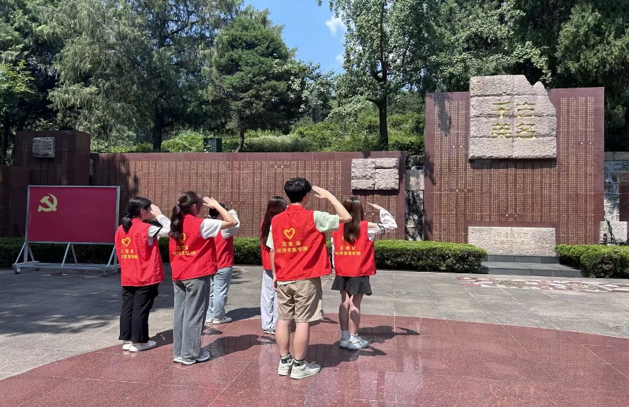 图为团队成员向烈士英名敬礼
