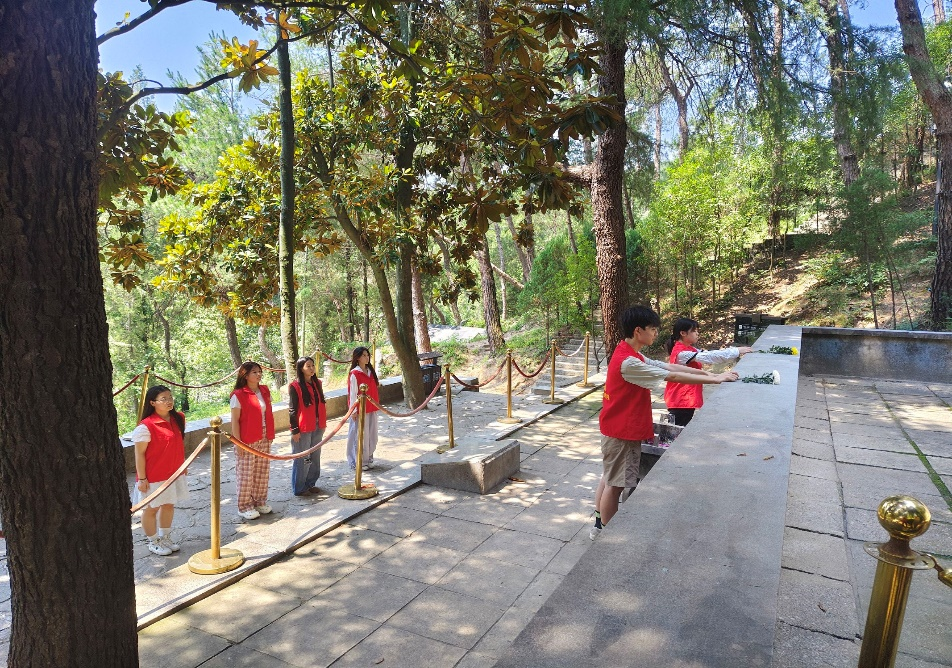 7月8日上午,团队成员来到许世友将军故里,走进将军纪念馆。据了解,许世友将军作为中国共产党久经考验的忠诚共产主义战士、无产阶级革命家与卓越军事指挥员,在新民主主义革命时期南征北战、出生入死,立下赫赫战功。通过参观,队员们详细知晓了将军的生平与功绩,对这位为国奉献、鞠躬尽瘁的老将军满怀敬意,更从他身上深切体会到大别山精神的精髓。随后,实践队队员自发购置鲜花,在将军墓前鞠躬献花,以此表达缅怀之情。