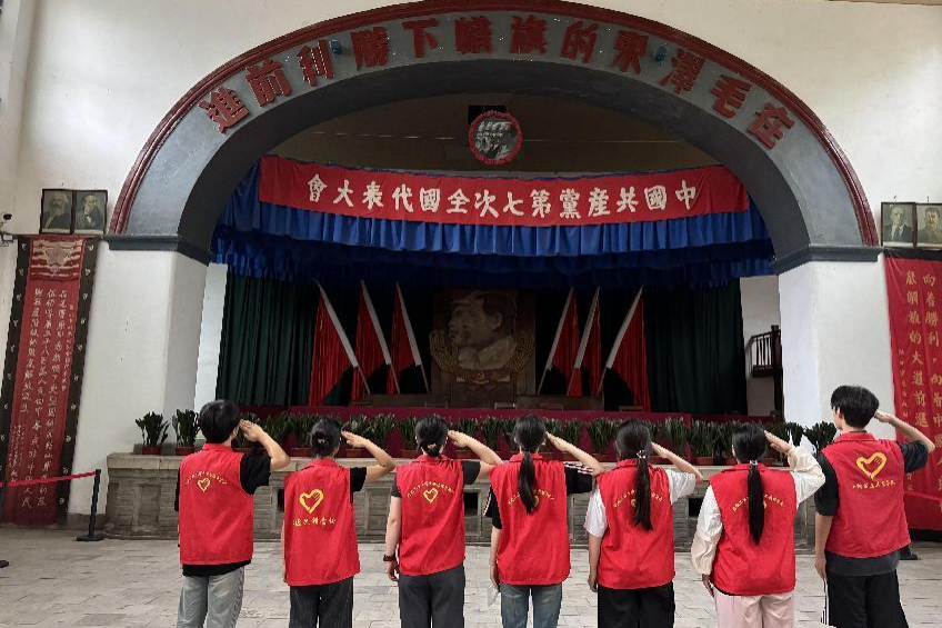 为了更深入了解习近平新时代中国特色社会主义思想是如何在历史长河中应运而生,又是怎样为国家发展,民族复兴提供强大思想指引,7月9日,实践团走进杨家岭革命旧址,通过实地参观延安时期中共中央驻地,深刻认识中国共产党在延安时期领导中国革命,探索马克思主义中国化时代化的光辉历程。并与讲解员深入交流,在生动的环境中感悟不畏艰苦的品质和全心全意为人民服务的决心。