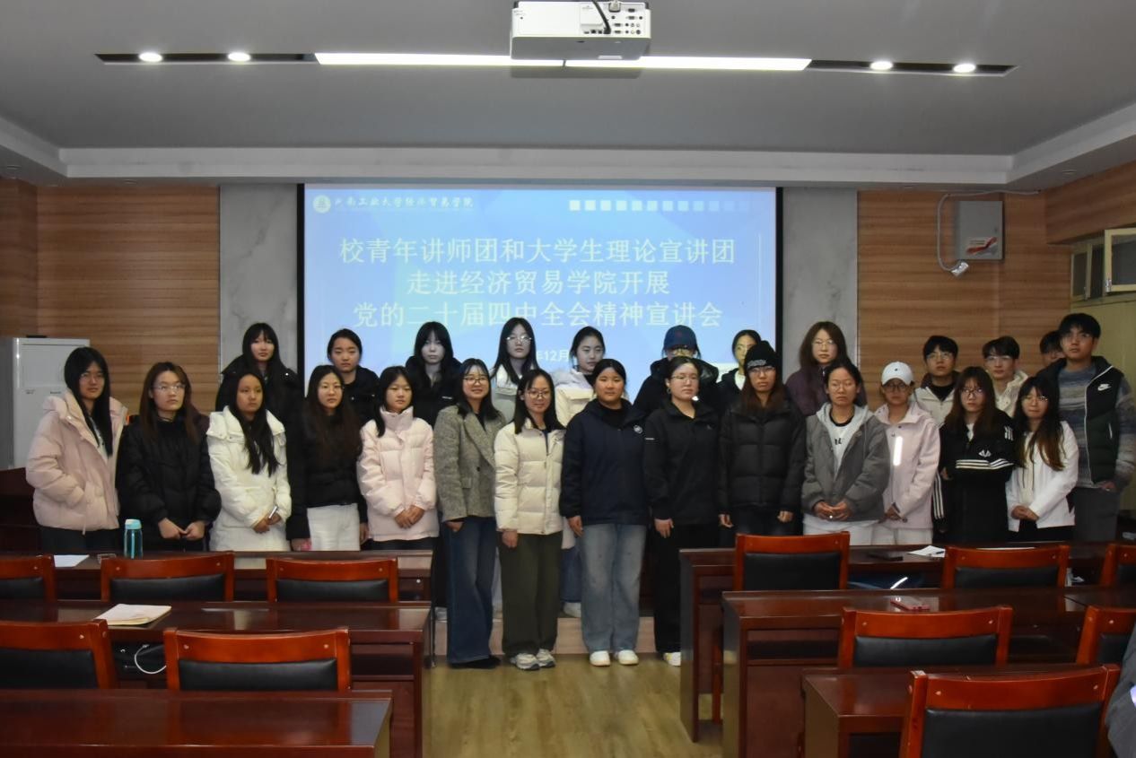 为深入学习贯彻党的二十届四中全会精神,引导广大青年学生深刻领会“十四五”发展成就与“十五五”战略部署,12月2日,校青年讲师团与大学生理论宣讲团走进足球比分网站 ,在博识楼3605会议室开展专题宣讲活动。本次宣讲会由校青年讲师团成员王秋瑾与校大学生理论宣讲团成员郝甜甜共同主讲,学院120余名学生代表参加学习。