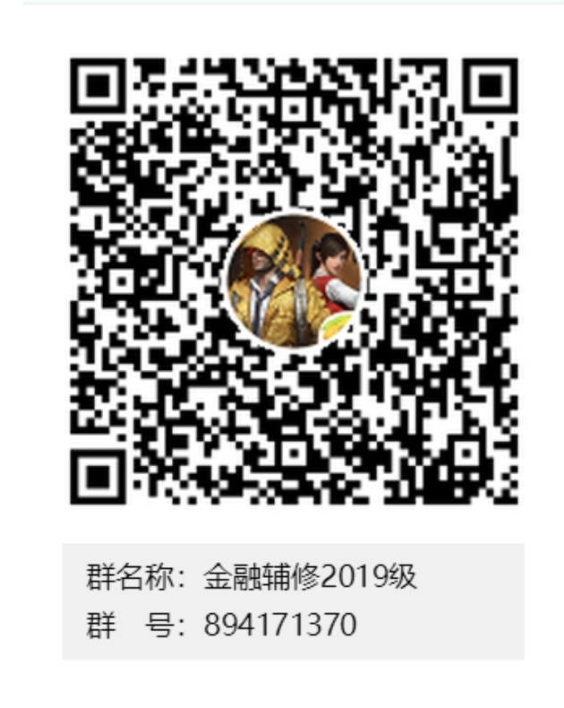 缴费方式:本次缴费采用二维码个人缴费方式,请报名成功并完成注册的学生到所报名学院扫码缴费,第一学年学费为14.5学分×82元/学分=1189元(第一学年所修学分为14.5学分),并添加QQ群“金融辅修2019级”,群号为894171370。