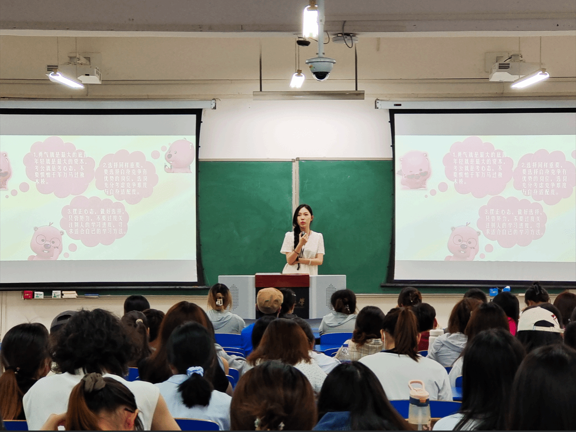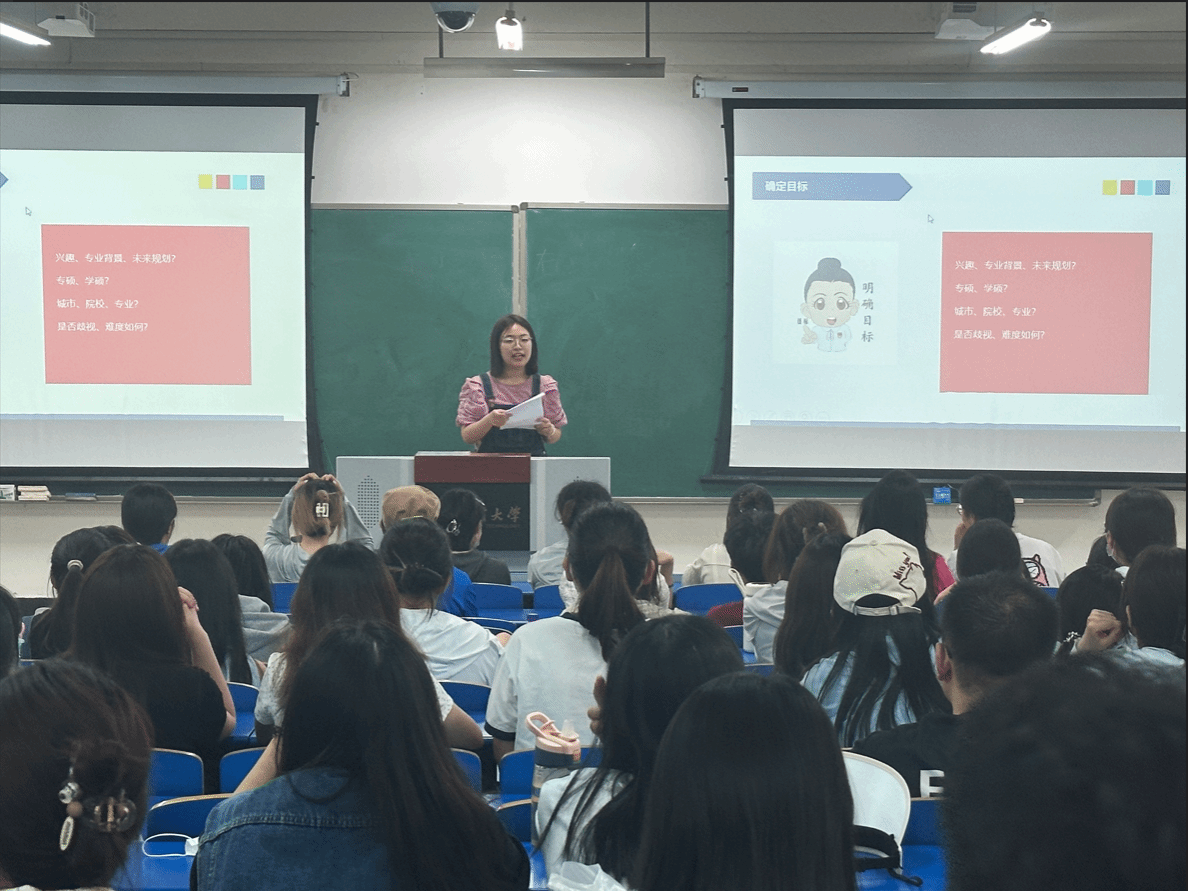 五位毕业生结合自身情况详细地介绍了考研考公就业的准备过程和注意事项,强调要清晰认清自己的追求,明确目标,早做准备、全力以赴。互动环节大家就自己关注的问题进行了热烈交流和讨论。