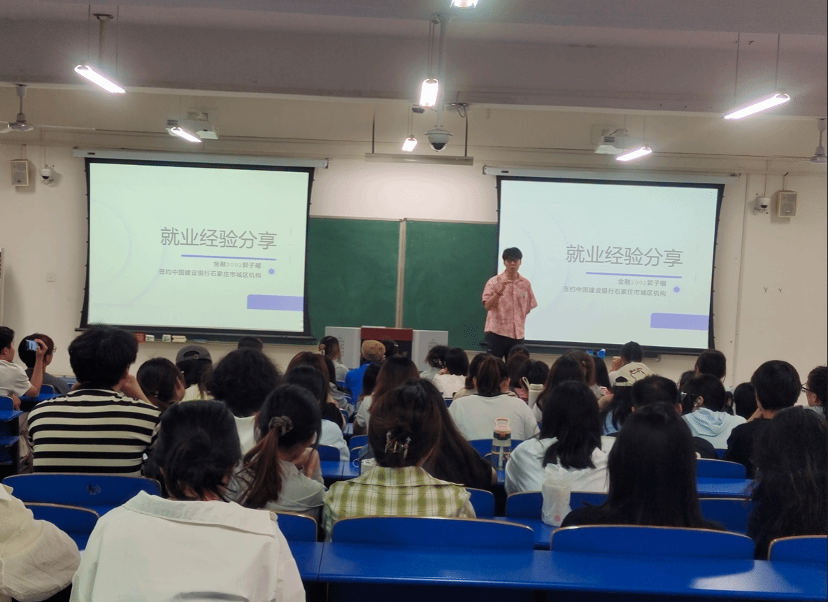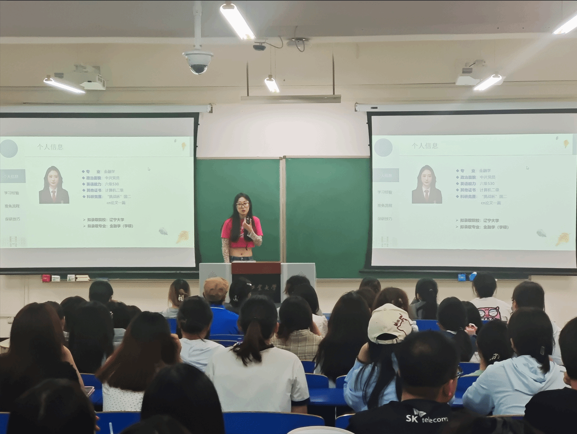 5月13日晚上,金融学系组织20级毕业生陈家瑶、黄茜、郭子曜、侯梦垚、单文婷等五位同学在3208教室为金融学专业21级全体学生进行考研考公就业方面的经验分享和交流,会议由金融学系主任奚宾主持。