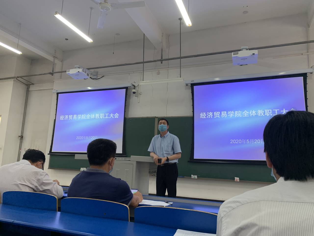 院长孙中叶首先对全院教职工在疫情防控前一阶段为保证教学、学科建设、科研、学生工作的正常运行的辛苦付出表示衷心的感谢,接着她对学院前一阶段疫情防控、网络教学、特色骨干学科申报、线上答辩、考研就业辅导、研究生线上复试等工作进行了简单总结。最后,她就学院下一阶段工作提出如下要求:一是对当下的疫情要有清醒的认识,疫情还未结束,不能麻痹大意,需要持之以恒抓防控;二是要严格遵守学校关于疫情防控的各项规章制度,按照相关要求进出学校,因特殊事情需要离郑要提前按要求办理相关手续;三是按照学校的相关要求,继续做好线上教学、线上答辩、期末考试、返校学生管理、毕业生离校等相关工作,确保本学期下一阶段各项工作有条不紊推进。