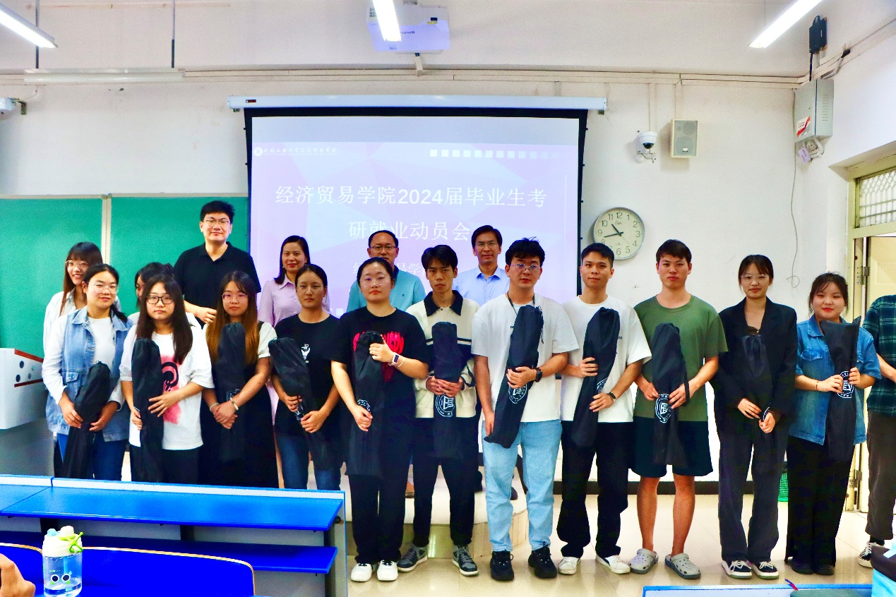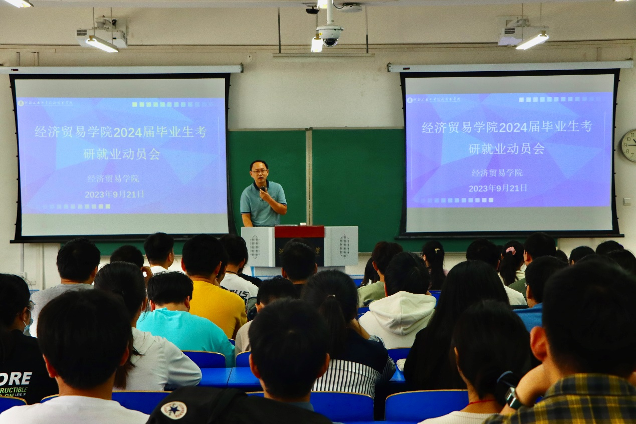 在博识楼3209教室召开2024届毕业生考研就业动员会,副院长李文启、朱坤林,学工办主任李振宇及最快足球比分网