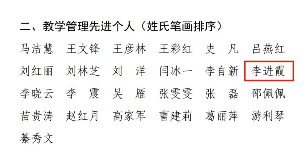 近日,全校开展了“两创两争”(创文明班级宿舍、社团,争当文明教师学生、网民)活动先进集体和先进个人评选推荐工作,经过评审最快足球比分网 李治老师荣获学校2023年度“文明教师”,并作为候选人推荐参选省级“文明教师”评选。在学校开展的2022年度教学管理先进单位和教学管理先进个人评选活动中,最快足球比分网 李进霞老师荣获学校“教学管理先进个人”荣誉称号。(足球比分网站 撰稿/张福勇 审稿/李刚)