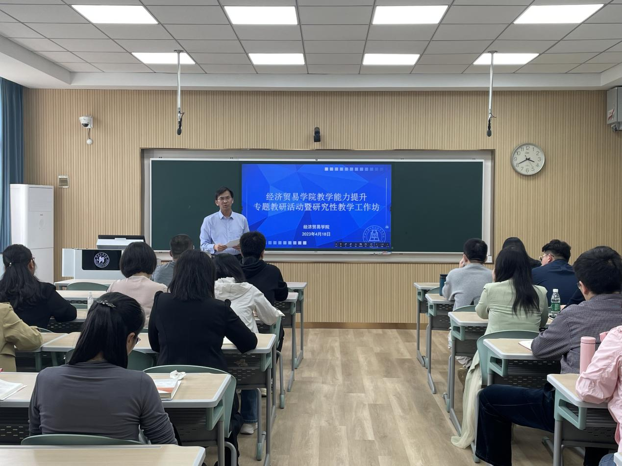 为加强研究性教学,提升教师教学能力,4月18日下午,足球比分网站 在3330教室召开教学能力提升专题教研活动暨研究性教学工作坊,学校督导戴晓鹂老师、学院督导吴成浩老师、各系主任和青年教师参加了本次教研活动。活动由副院长朱坤林主持。