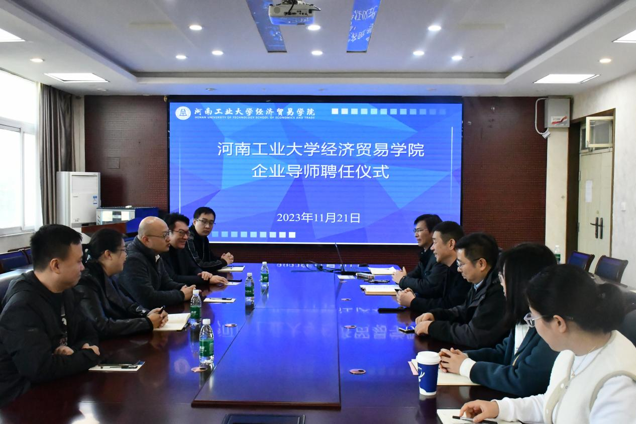 举行了企业导师聘任仪式。此次聘任仪式邀请了郑州产城更新发展投资有限公司的四位专家担任企业导师:总经理杨扬、副总经理周琦、产业运营总监靳彦斌和投资总监简典。仪式由副院长朱坤林主持。